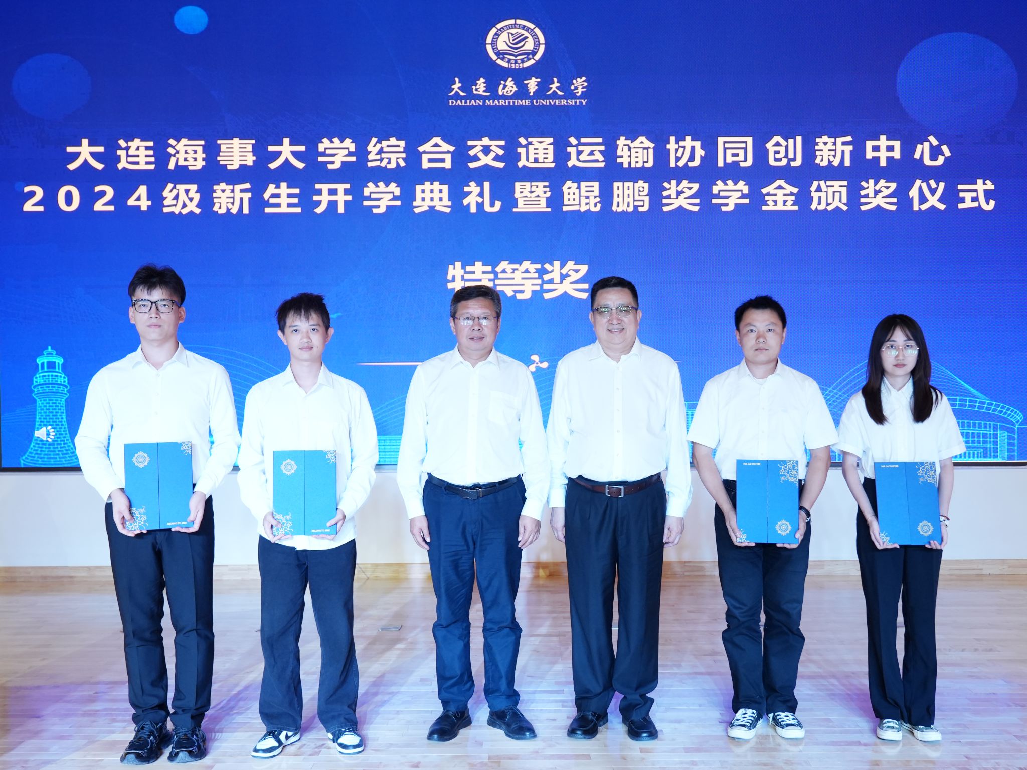 9月18日下午,大连海事大学综合交通运输协同创新中心(以下简称“中心”)2024级新生开学典礼暨鲲鹏奖学金颁奖仪式在图书馆学术报告厅顺利举行。校党委书记许民强出席仪式并讲话,航运经济与管理学院党委书记张罕育、中心全体师生参加了仪式。仪式由中心副主任赵宇哲主持。
