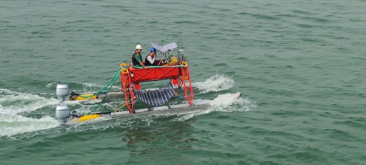 3.波浪自适应双体救助艇在国家工信部高技术船舶科研计划(2019年1月至2023年6月)的支持下,熊伟教授团队成功研制了国内首套波浪自适应性双体救助船,相关成果填补了我国相关技术领域空白。船长6.6米,船宽3.3米,重量1.2吨,救助船可手动操作,也可实现远程无人遥控操作。救助船在5级海况下,可从母船安全收放,具备对海面落水人员实施有效救助的能力。大连海事大学掌握救助船所涉及的所有核心关键技术,且拥有完整的知识产权。目标成果未来将以海事水面作业为导向,拟在此基础之上围绕海况适应能力和无人导航控制等方面进行技术改进,以进一步提高波浪自适应船高海况作业的稳定性、准确性和高效性。