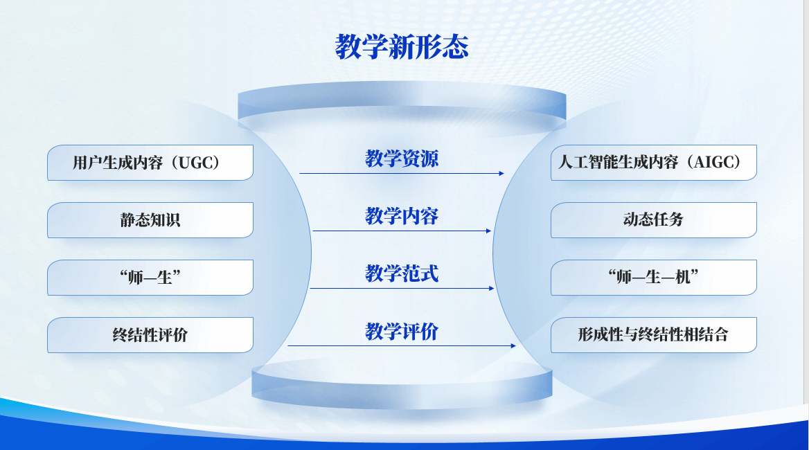 “数智课程”建设是人工智能赋能高等教育教学改革的重要组成部分,其依托知识图谱或(和)大模型技术,塑造了课程教学的新形态,实现了教学资源从用户生成内容(UGC)向人工智能生成内容(AIGC)转变,教学内容从静态知识向动态任务转变,教学范式从“师-生”向“师-生-机”转变,教学评价从终结性向形成性与终结性相结合转变。