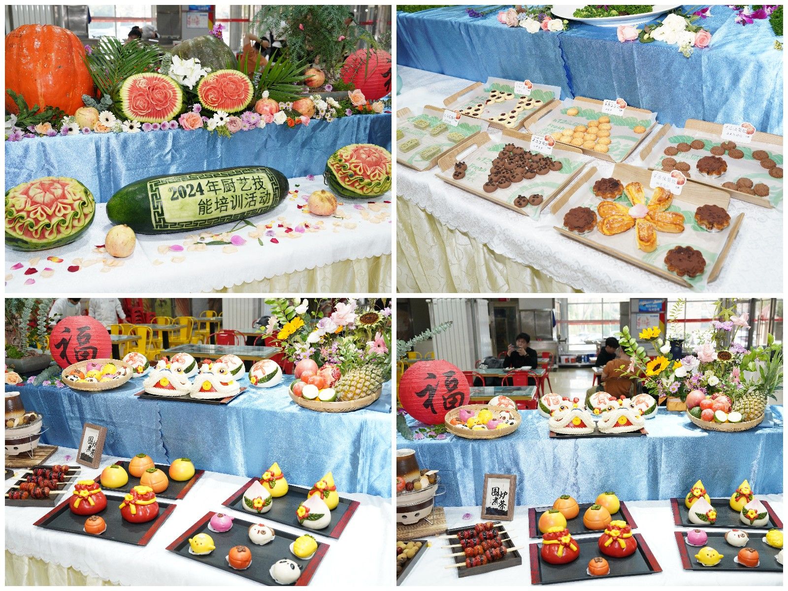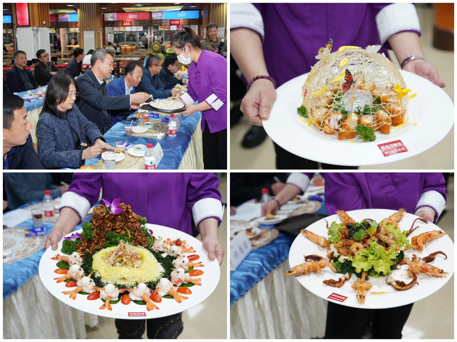 比赛分为凉菜、烹饪组规定菜——爆炒腰花、烹饪组花色菜、面案组——芹菜牛肉水饺和面案组——香酥油条共5个比赛项目。每位参赛选手需在限定时间内完成自己的作品。赛场上,锅碗瓢盆交响曲此起彼伏,参赛厨师们巧手翻飞,从选材、切割、烹调到摆盘,每一步都透露出对食材的尊重和对烹饪艺术的追求。花色菜鸟巢归秀、万家灯火、书香味道、丰收鲍鱼富贵虾、奶香糕黑醋汁松板肉、纸包豆腐鱼、毛氏红烧肉、新派松鼠鱼、牡丹富贵虾球、海味全家福鲜香味美,冷拼八彩蝴蝶、八方来财、全海宴、椰子树、蝶恋花、冷拼秋菊、爽口八丝、鸳鸯戏水、锦绣河山、八珍玻璃耳片秀色可餐,普通的食材在选手们的创新演绎下焕发了新生,而营养健康的菜品设计,更是体现了现代餐饮对均衡膳食理念的重视。