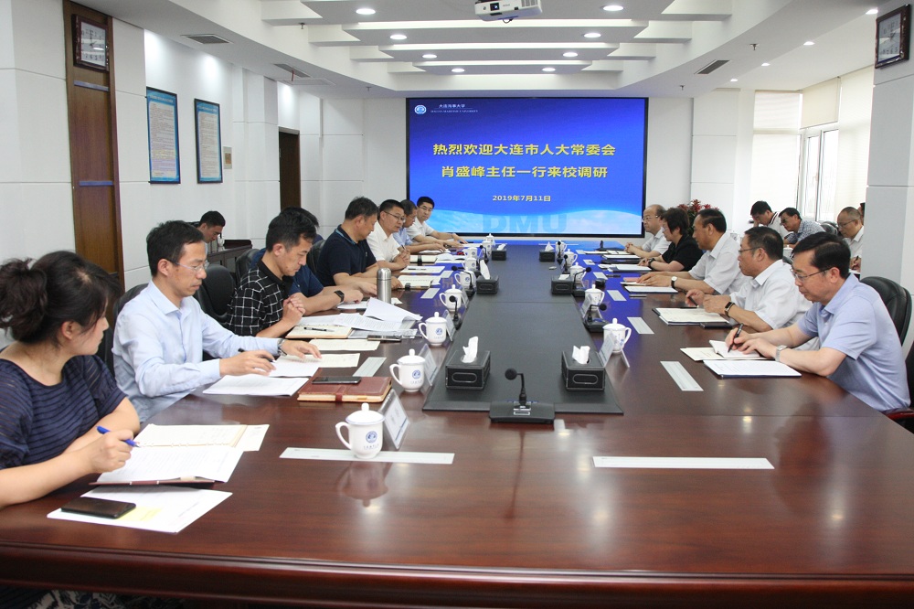 7月11日,市人大常委会党组书记、主任肖盛峰一行来校调研,围绕“以习近平总书记关于东北振兴系列重要讲话为指导,加快推进大连国际航运中心”主题开展座谈交流,校长孙玉清、副校长王小勇,科技处、航运发展研究院及相关二级单位专家、教授参加座谈。座谈会由副校长王小勇主持。