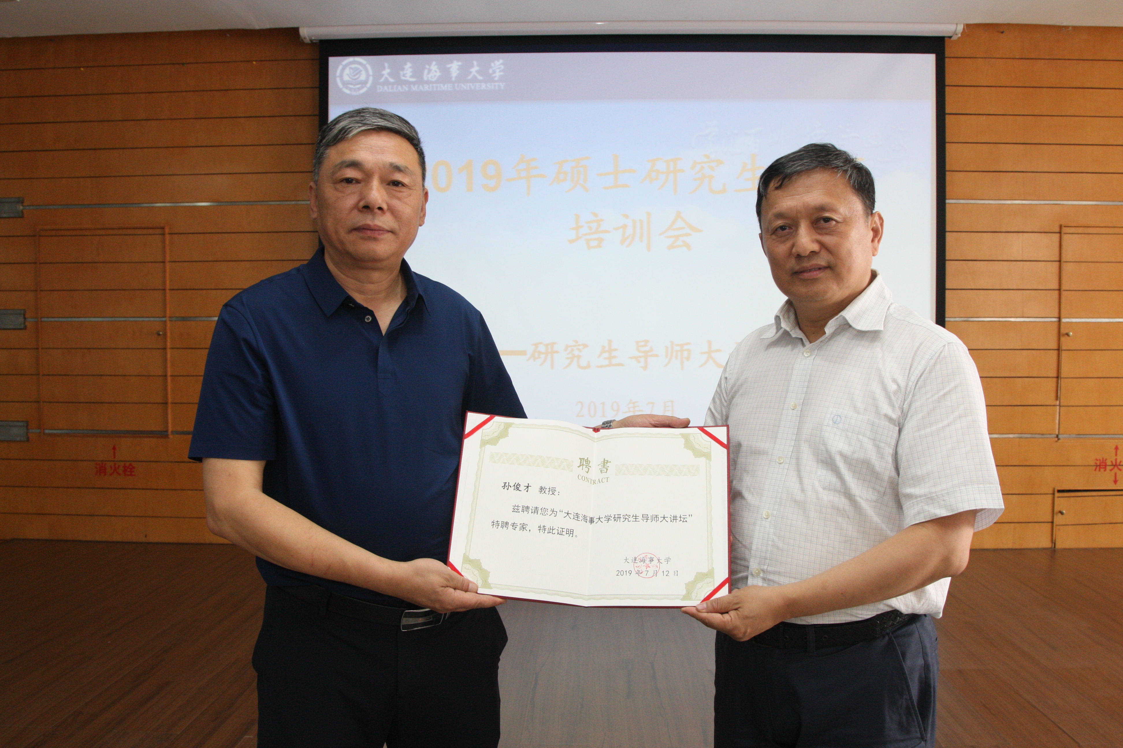校长孙玉清出席大会并为“研究生导师大讲坛”特聘专家孙俊才教授、陈宝玖教授颁发了聘书。