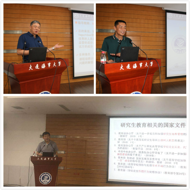 孙俊才教授、陈宝玖教授分别以《做研究生学科和科研的领航人》《与学生一起成长—我带研究生的故事》为主题作了专题报告,从立德树人、如何指导研究生、处理好育人与其他工作的关系等工作实际出发,与大家一起分享了历年来指导研究生的经验,并提出了提高研究生导师指导能力的建议,帮助各位新导师更快的进入角色。