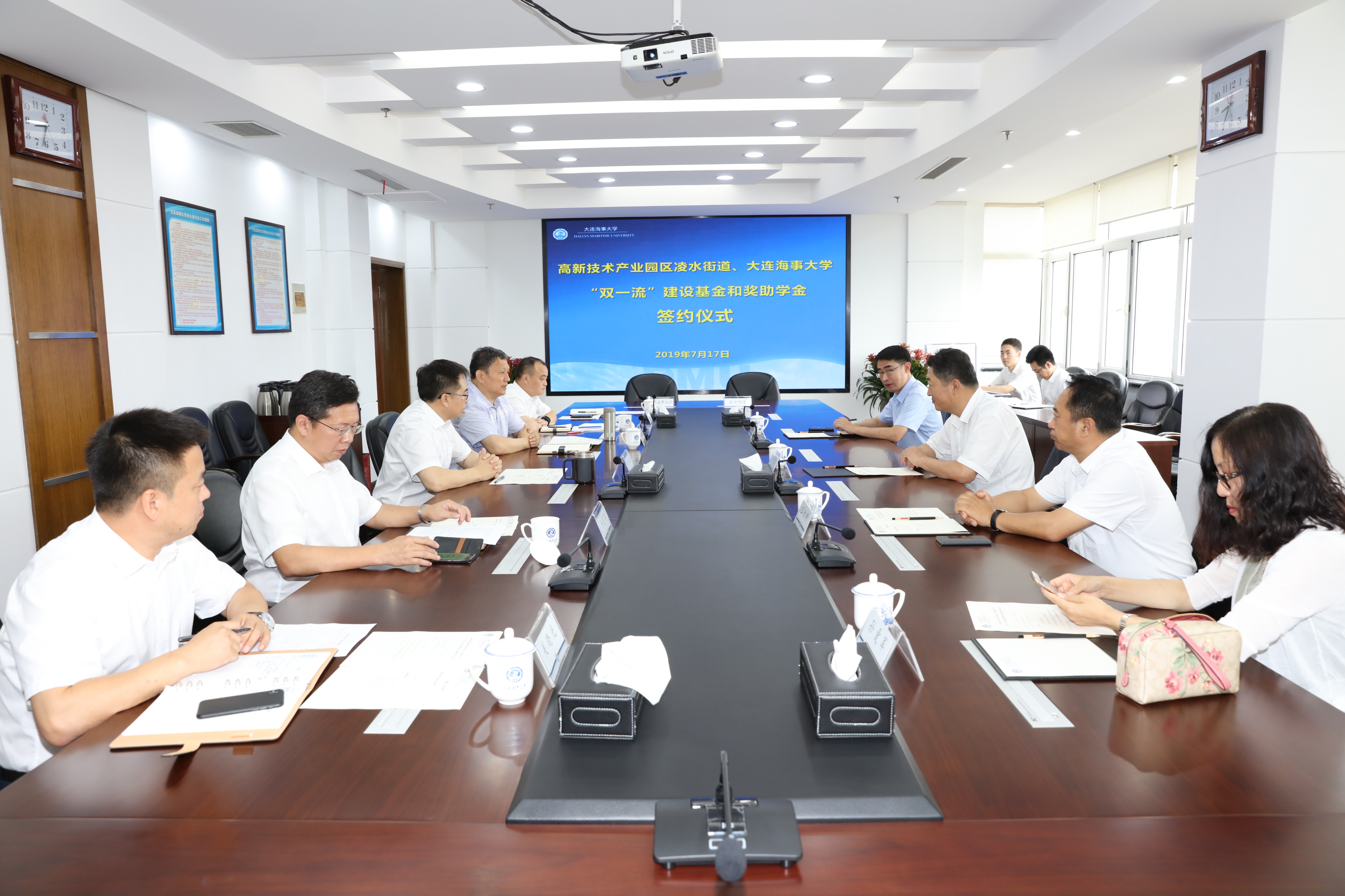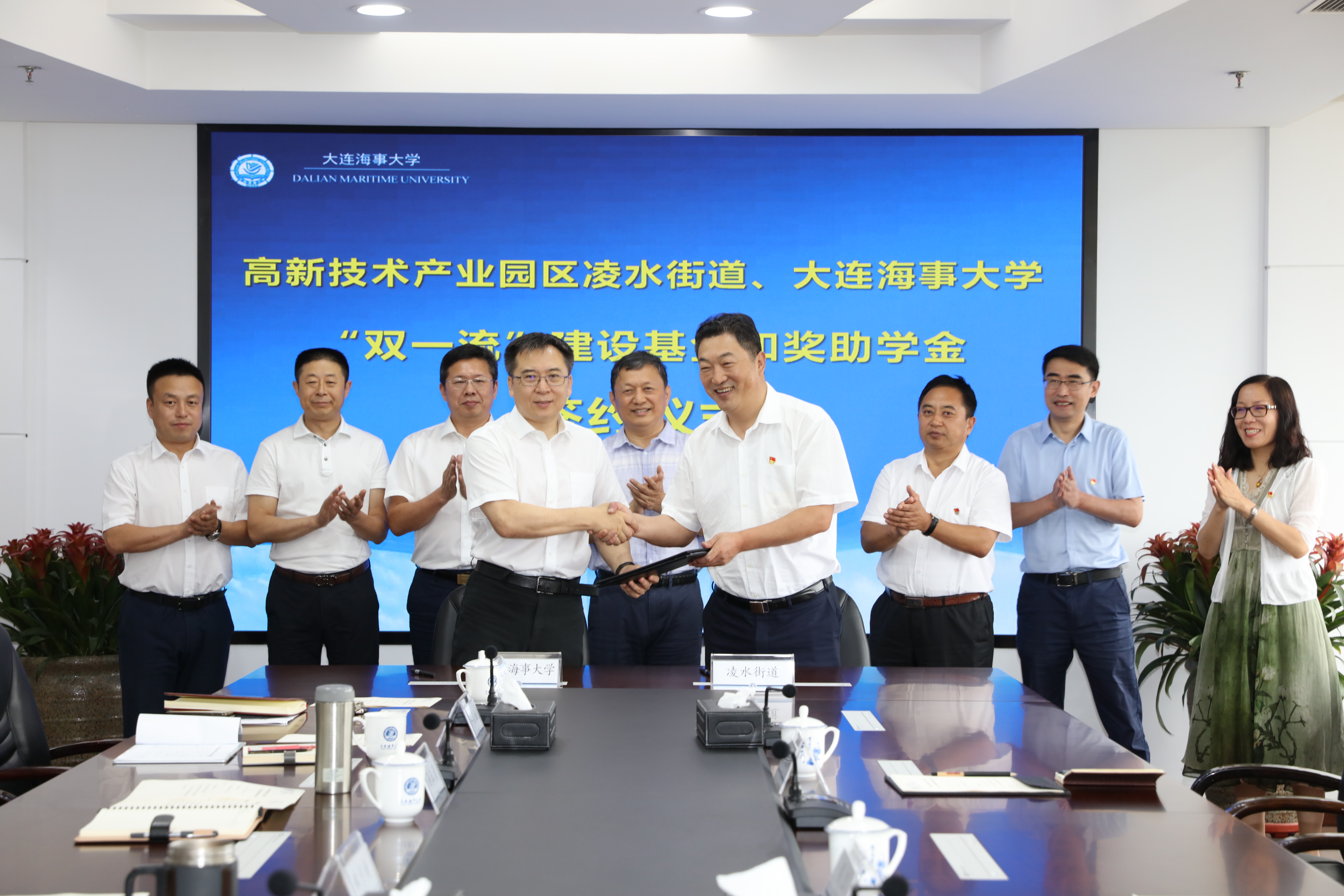 7月17日上午,大连市高新技术产业园区凌水街道办事处与大连海事大学“世界一流海事大学建设基金”、奖助学金签约仪式在大连海大举行,凌水街道捐赠100万元用于支持学校“双一流”建设,捐赠52万元用于学生奖助学金发放。凌水街道党工委书记、办事处主任侯卫,办事处副主任王太明、党政办主任韩建良、文教办主任孙爱军,大连海事大学党委书记郑少南、校长孙玉清、党委副书记许民强及学校相关部门负责人出席参加了签约仪式。