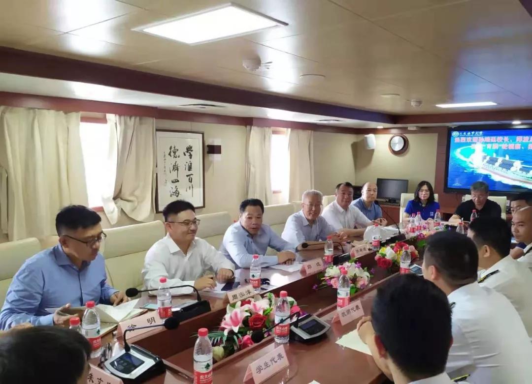 7月17日,副校长孙培廷一行登上靠泊在南通通州码头的“育鹏”轮,与中波轮船股份公司召开季度工作例会、开展船舶安全状况和教学实习质量检查并慰问在船师生。