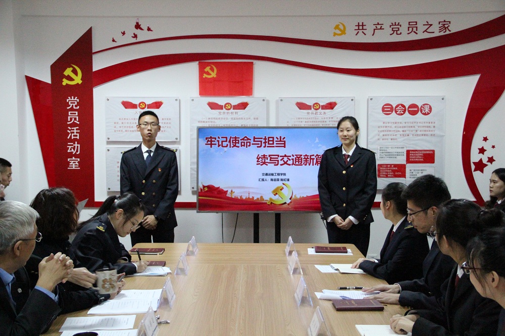 党日活动由情景党课《牢记使命与担当,续写交通新篇章》拉开帷幕,学生党员陈咨霖、陈虹瑾带领全体与会人员参观了一座特殊的“交通博物馆”,通过讲述“陆上交通展馆、航空航天展馆、海上交通展馆”等交通行业优秀党员事迹激励青年党员牢记使命与担当,为“海洋强国”、“交通强国”贡献青春力量。支部党员结合自身专业和经历交流了自己对“一流大学和一流学科建设”的思考与理解。活动由党支部书记苏志豪主持。