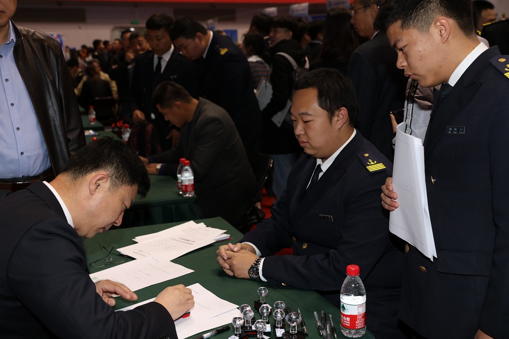 11月7日,大连海事大学2019届毕业生供需见面洽谈会隆重举行。本次洽谈会共有413家单位参会,提供8602个招聘职位。其中,航海类职位1308个,信息类职位1926个,交通运输管理类职位966个,装备制造类职位1043个,金融证券类职位547个,文法语言类职位472个,不限专业职位2340个。此次洽谈会参会单位数量、质量再攀高峰,许多学生现场达成签约意向。