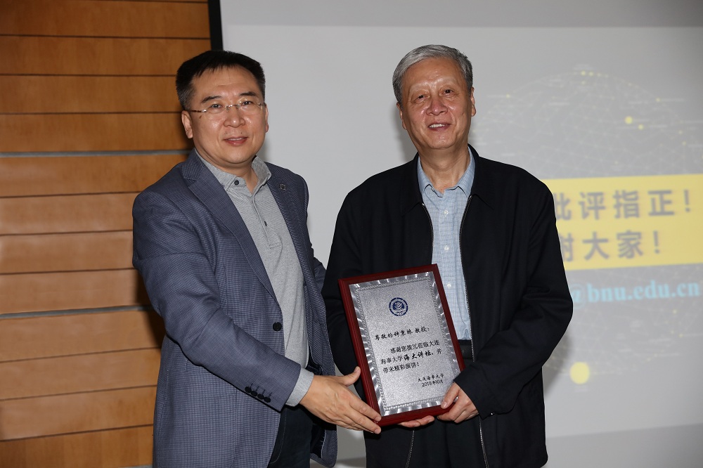 讲座结束后,党委书记郑少南代表学校向钟秉林赠送了“海大讲坛”纪念牌。