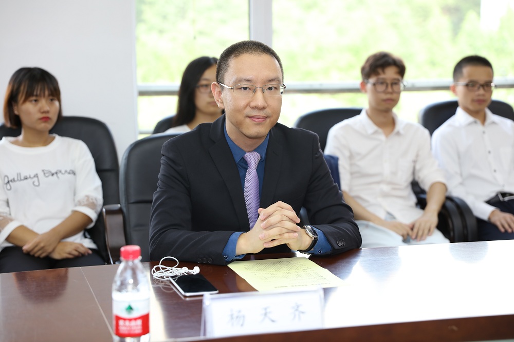 捐赠仪式上,校友事务与合作处副处长靳伟代表学校教育发展基金会与杨天齐签订奖学金捐赠协议书。