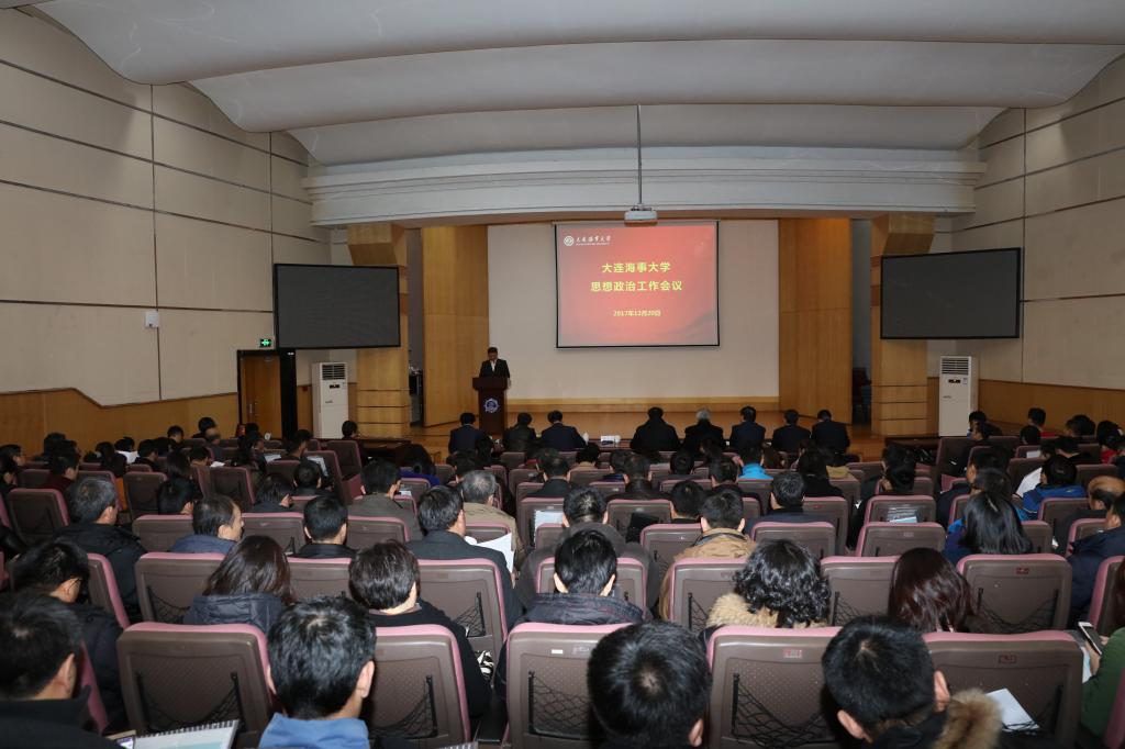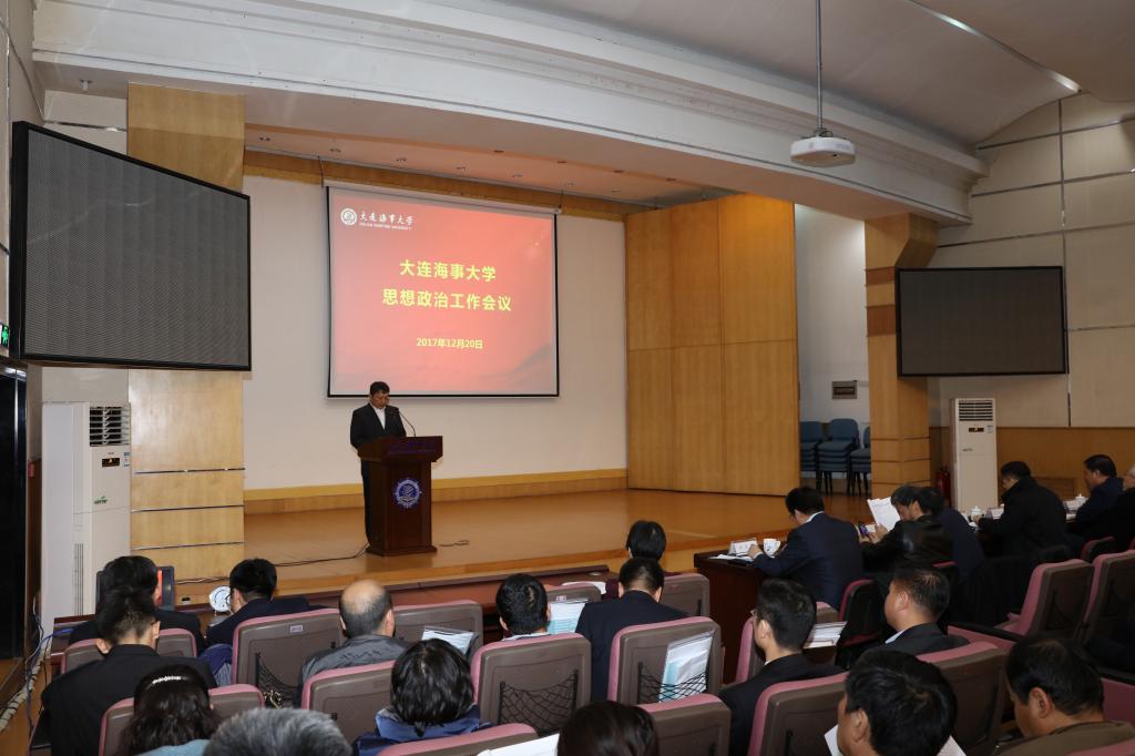 12月20日下午,在全国高校思想政治工作会议召开一周年之际,大连海事大学在中远报告厅召开思想政治工作会议。校党委书记郑少南作了“初心如磐 使命如山 全面提升思想政治工作质量和水平”的主题报告,并对今后学校思想政治工作进行部署。校长孙玉清传达了中央关于加强和改进思想政治工作的最新精神和有关要求。