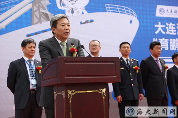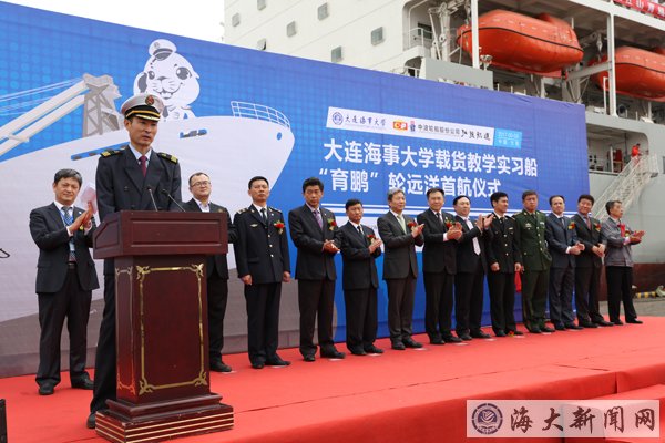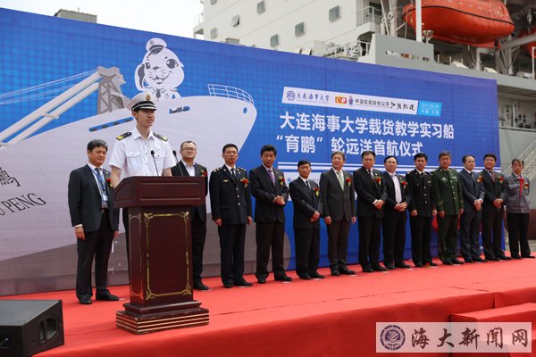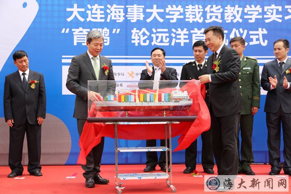 仪式最后,刘正江宣布,大连海事大学载货教学实习船“育鹏”轮启航。