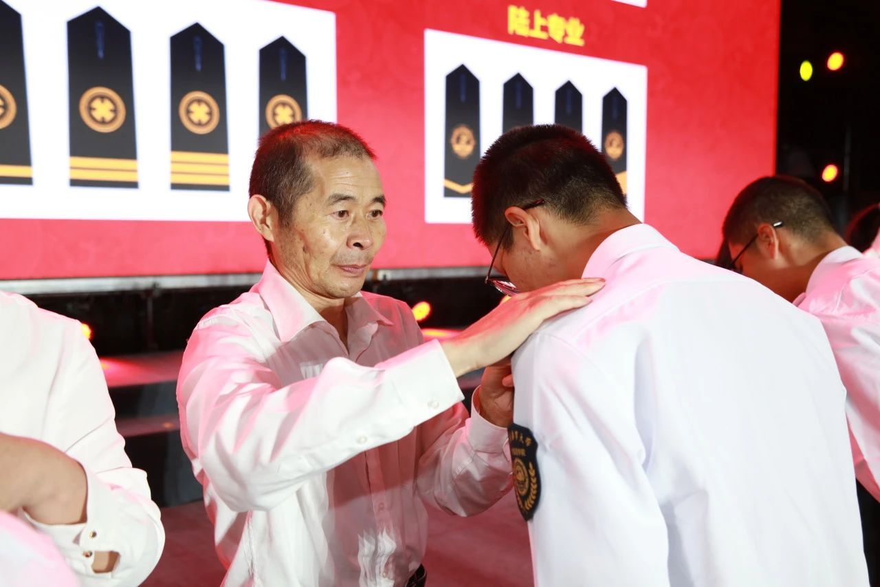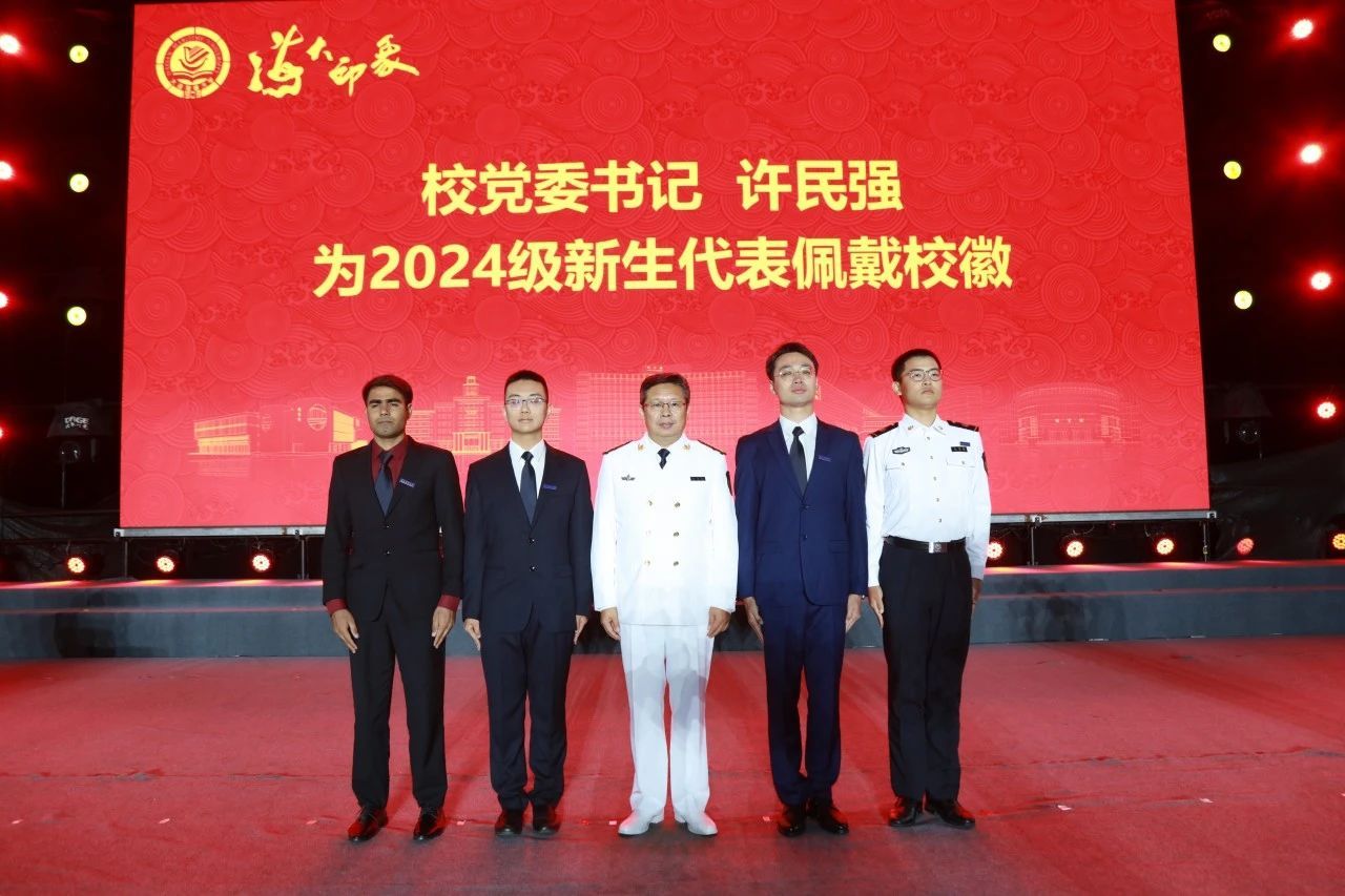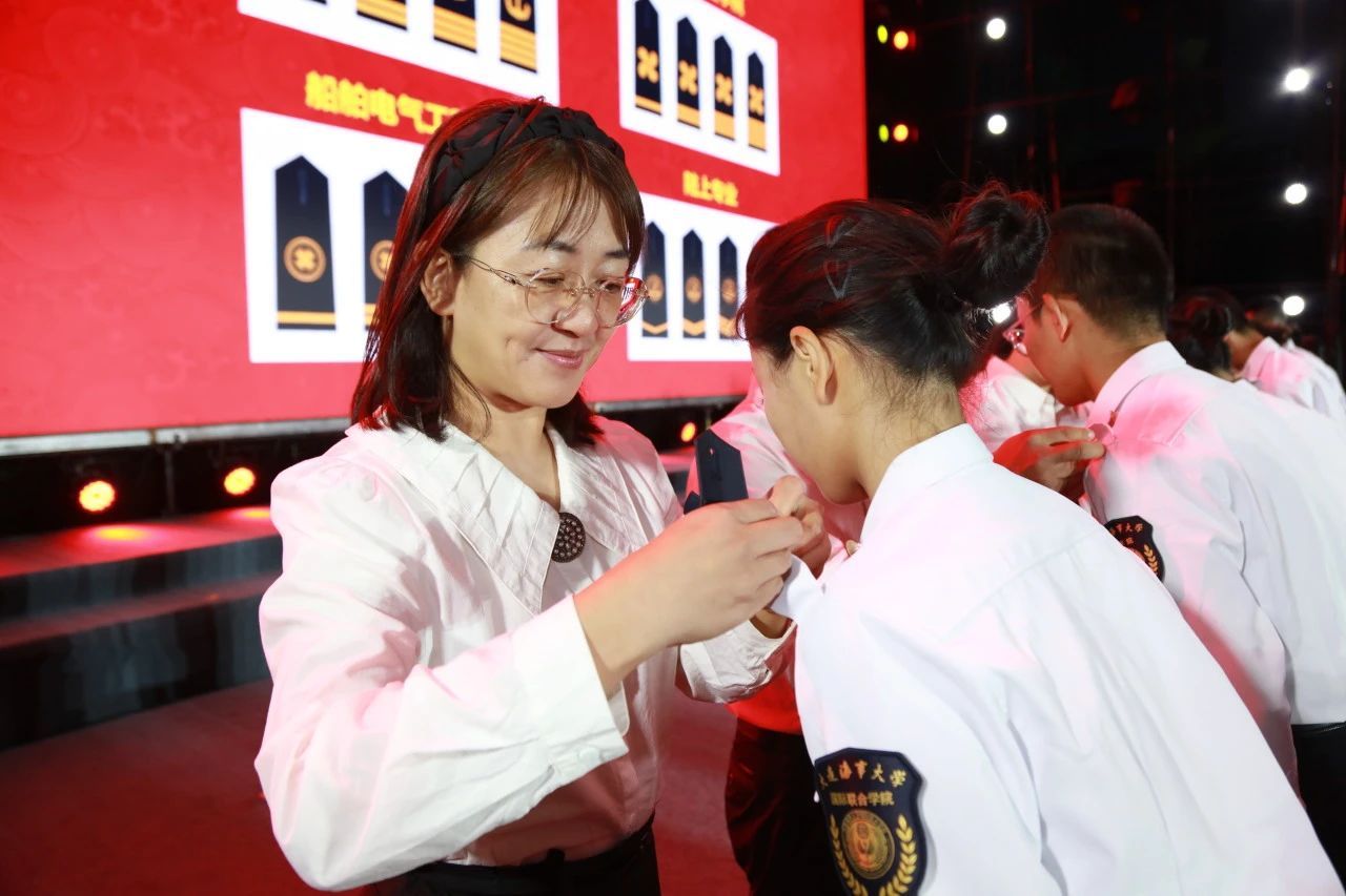 各学院教师代表为2024级新生代表佩戴肩章,勉励同学们在建设世界一流海事大学征程上牢记使命,勇立潮头,接续奋斗。