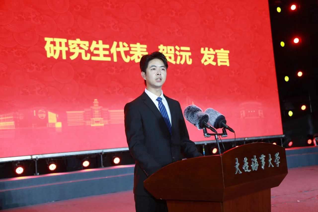 船舶电气工程学院贺沅同学代表研究生新生发言。他分享了本科期间在海大的成长及支教经历的感悟,号召同学们下苦功夫,不断向科学技术广度和深度进军,把论文写在祖国大地上,把科技成果应用在实现社会主义现代化的伟大事业中。