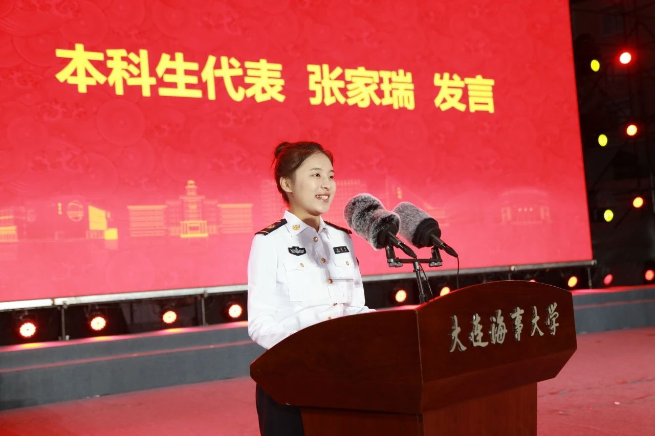 航运经济与管理学院张家瑞同学代表本科生新生发言,表达了选择海大的初衷和对在海大求学的向往和憧憬。她号召全体本科生努力成为优秀的海事人才,积极促进国际海事交流,为交通强国、海洋强国贡献出自己的力量。