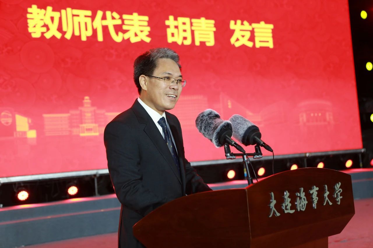 全国模范教师、信息科学技术学院胡青教授代表全体教师讲话。他从理想情怀、修身求知、创新求实三个方面,勉励同学们成为有担当、有素养、有能力,具有国际视野,有益于社会的“新时代海大人”。