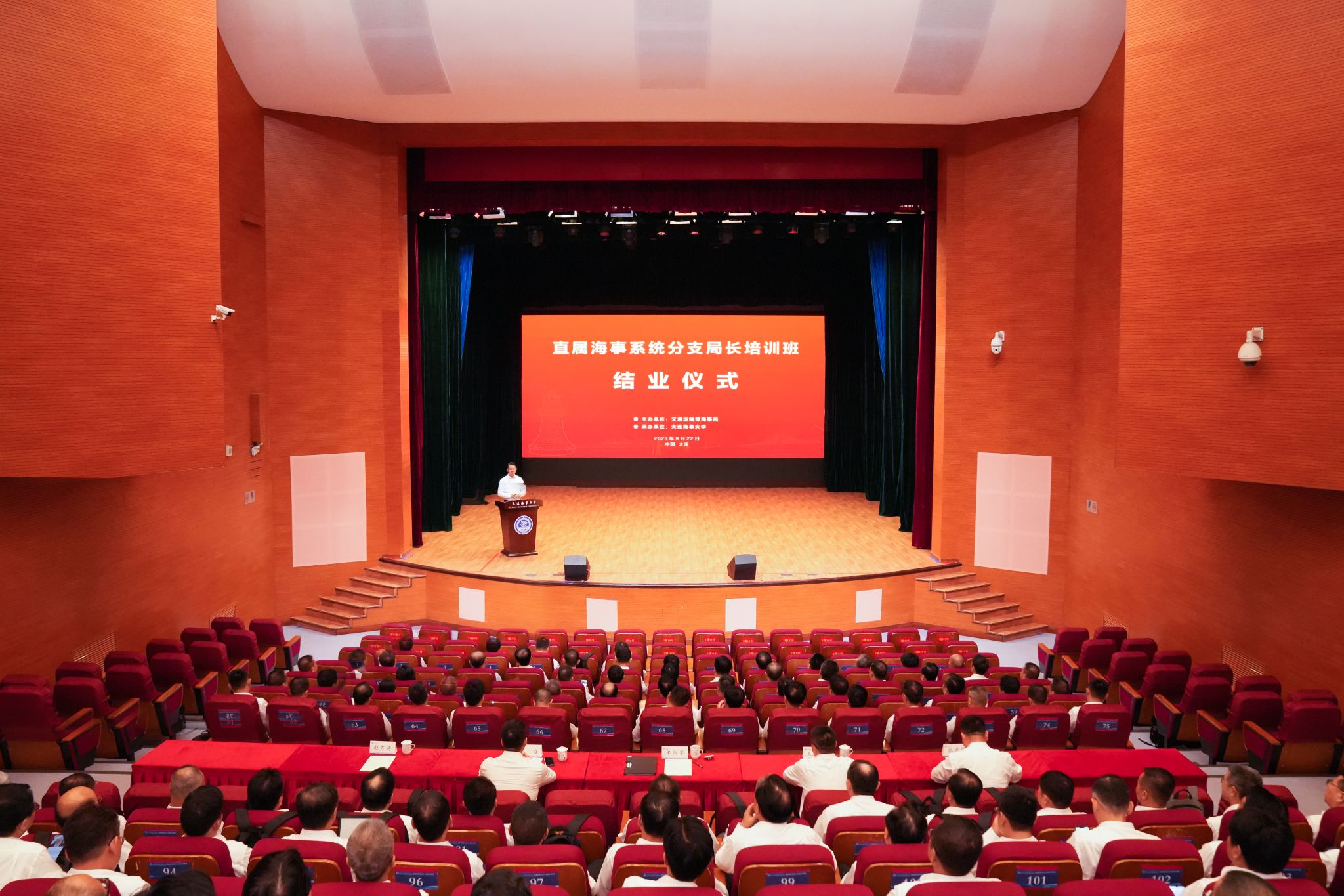 9月22日下午,直属海事系统2023年分支局长培训班结业仪式在我校大学生活动中心举行。校长单红军出席结业仪式并讲话,辽宁海事局副局长刘力出席结业仪式。仪式由副校长赵友涛主持。
