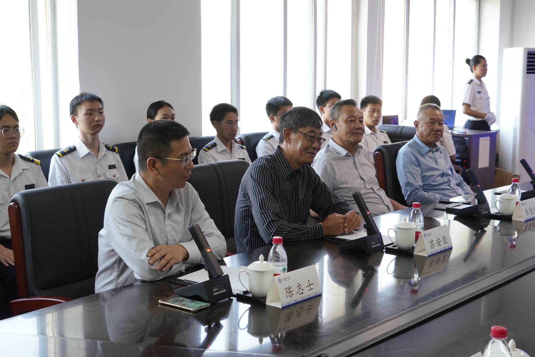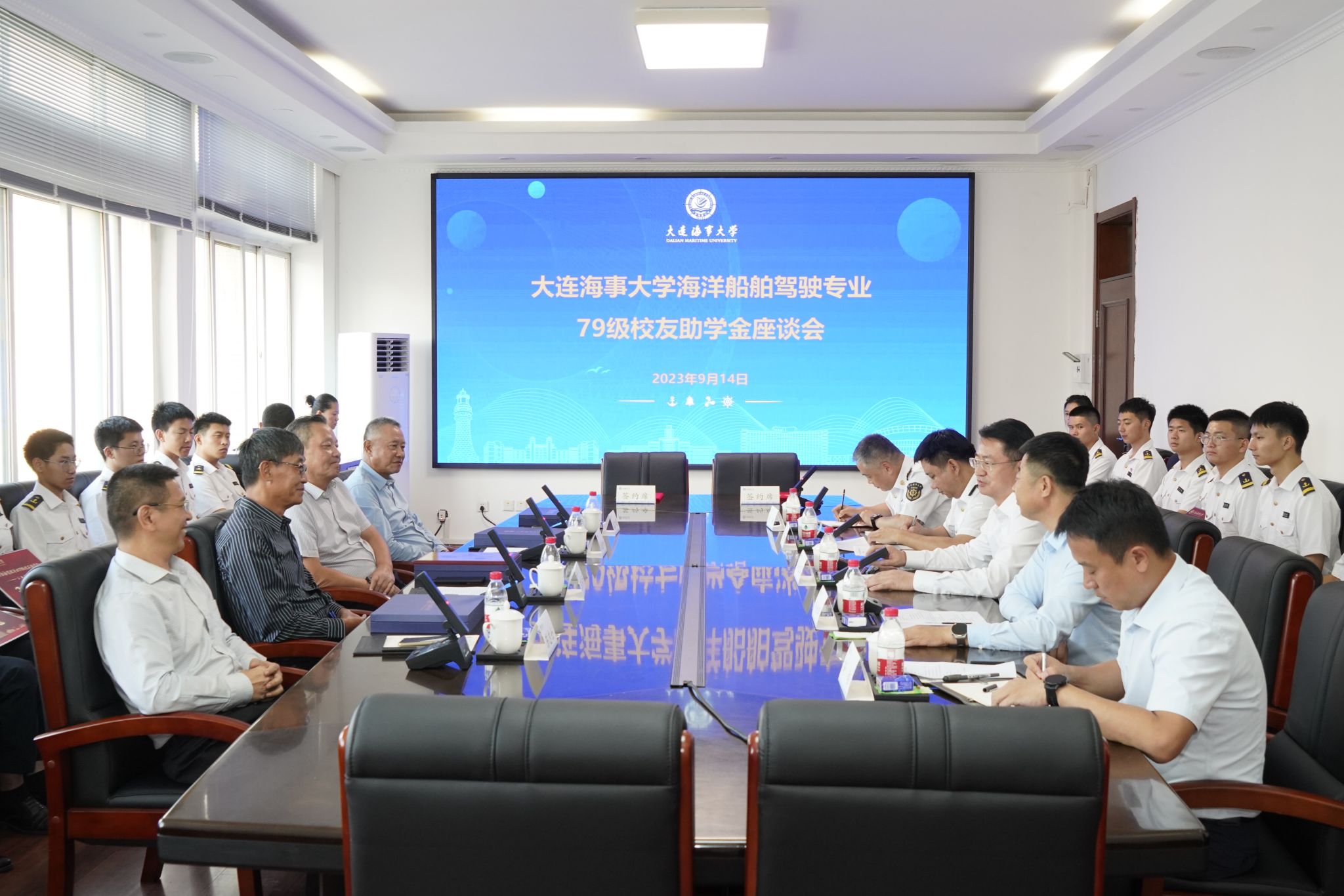 9月14日下午,海洋船舶驾驶专业79级校友助学金座谈会在航海楼321会议室举行。79级校友代表,国创船务有限公司总经理、船长苏安臣,上海SK海运公司原总经理、船长朱俊淋,上海京瀚海运有限公司原总经理、船长庞力更,华南中远海运集装箱运输有限公司原党委书记、大副陈志士,校长单红军出席座谈,校友事务与合作处处长杨新宇主持座谈。