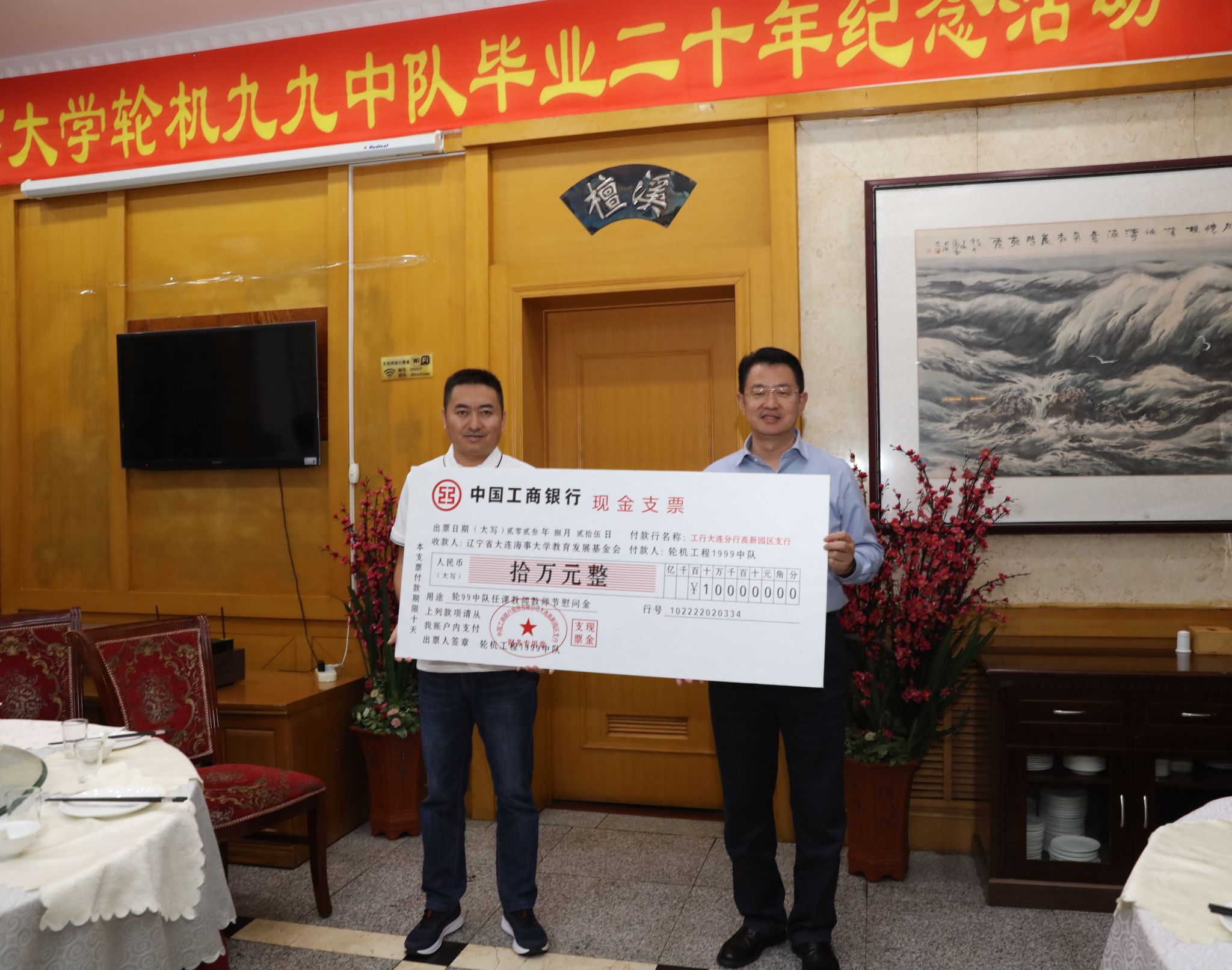 8月25日,轮机99级校友毕业20周年暨向母校捐赠活动仪式在国际海事培训中心举行。校长单红军出席捐赠仪式。捐赠仪式由轮机99级校友王颖迅主持。
