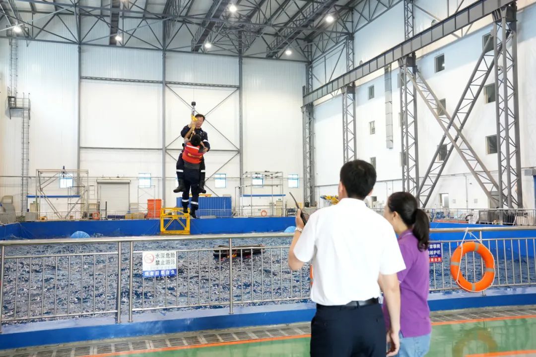在实验室,船舶与海洋工程学院冯凯老师介绍了辽宁省救助与打捞工程重点实验室,并现场组织相关老师模拟了救助打捞过程。信息科学技术学院院长付先平教授现场演示了水下机器人捕捞海产品的过程,并介绍了机器人水下精准感知与识别、目标抓取、布放与回收等技术。航海学院尹勇教授介绍了航海动态仿真和控制交通运输行业重点实验室相关情况,并现场演示了在不同海域、不同港口进行船舶操纵仿真等先进研究成果。