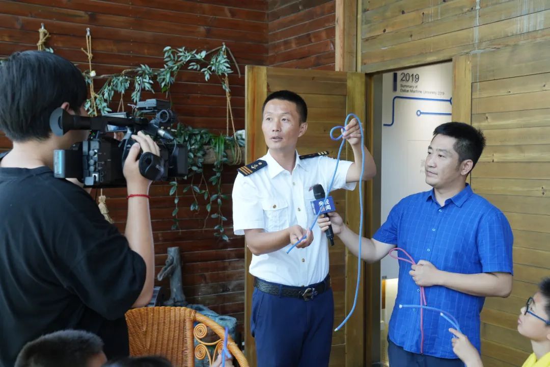 在国内首个航海教育博物馆内,我校航海历史与文化研究中心主任韩庆教授介绍了大连海事大学的校史及中国高等航海教育发展史。航海学院朱金善教授介绍了学校实习船的发展史及馆内展出的各类船上设备。轮机工程学院李文华教授现场展示了世界最大海深处地质取样,介绍了学校自主研发的全海深地质绞车系统。航海训练与工程实践中心李振宝老师在馆内的绳结工坊,现场演示了绳结的打法,并介绍了不同绳结的分类和应用。