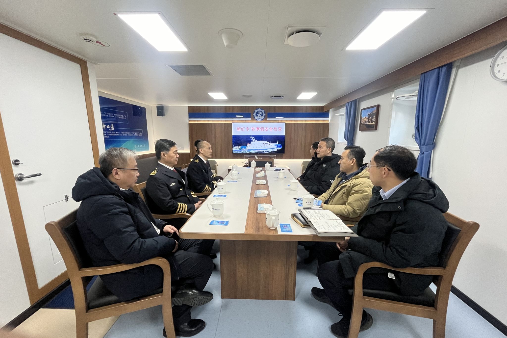 在两艘实习船上,赵宝刚详细了解船舶安全生产、教学实习、辅助科研等方面工作情况,并向全体船员和老师及其家属送上节日的问候和诚挚的祝福。赵宝刚表示,过去一年,通过大家的共同努力,实习船运行良好,并在服务学校“双一流”建设和研究型世界一流海事大学建设方面发挥了重要的作用。赵宝刚传达了上级安全生产工作要求,并强调,实习船作为学校的移动实验室,要把安全作为一切工作的“底线”“红线”。寒假期间,船员要坚守岗位、做好值班、规范操作。同时做好冬季防火、防寒、防风工作,防患未然,全力以赴守好岁末年初“安全关”。