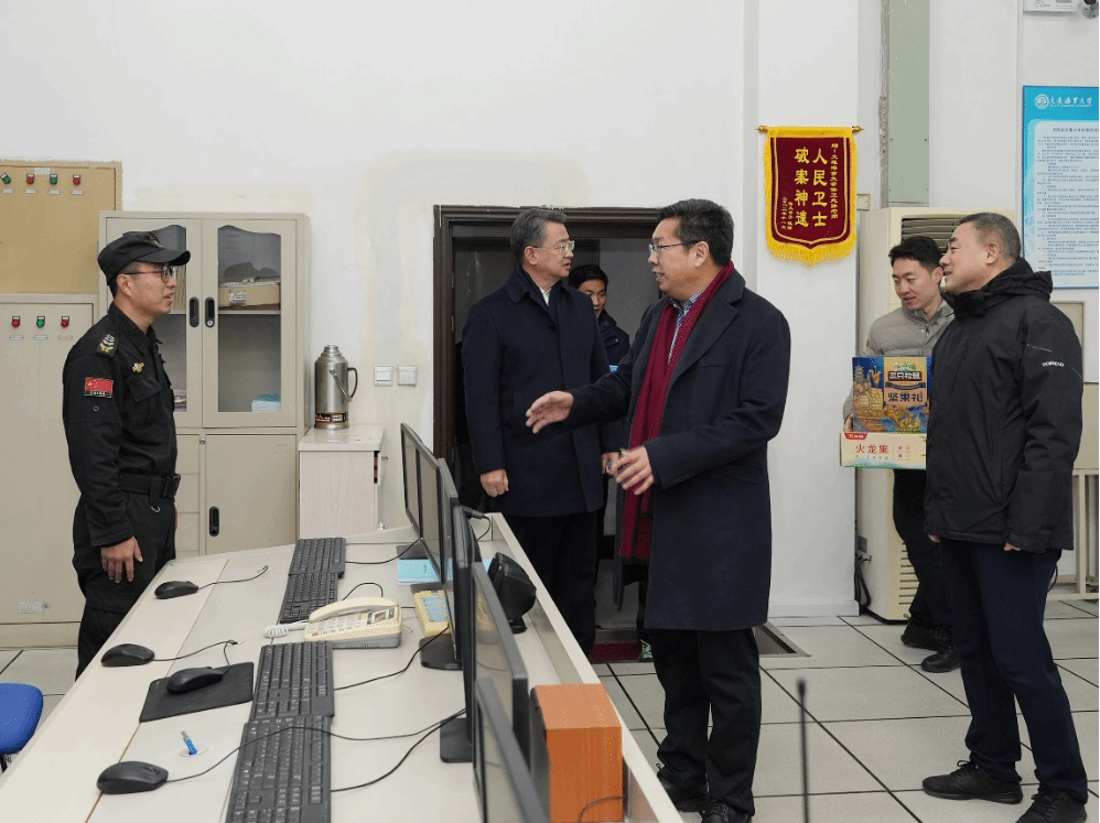 在走访慰问中,校领导与在岗职工亲切交流,详细询问了春节期间各项安全工作运行和保障情况。在应急指挥中心,校领导现场检查了校园安保情况并对相关工作进行了要求部署,强调要以“三个绝不能过高估计”为原则,加强值班巡逻,紧盯重点区域,做好风险隐患预判研判,确保春节期间校园安全稳定。