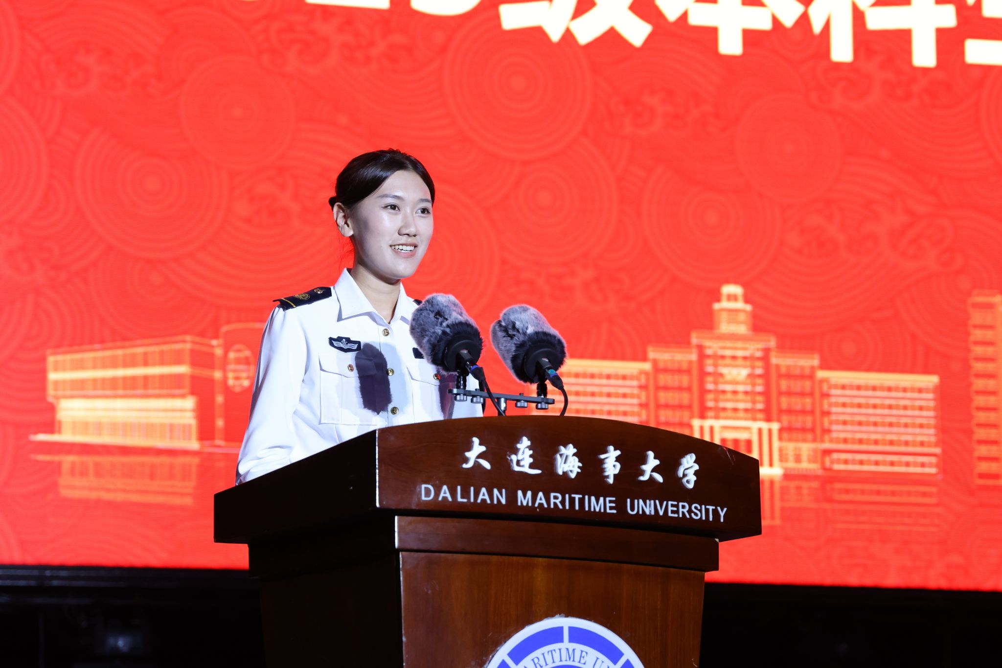 交通运输工程学院姜楠同学代表本科生新生发言,表达了对海洋的向往和初入海大的憧憬。她号召同学们铭记海大精神,锤炼品格、奋发有为,整装待发奔赴星辰大海,肩负起新时代海大人的使命。