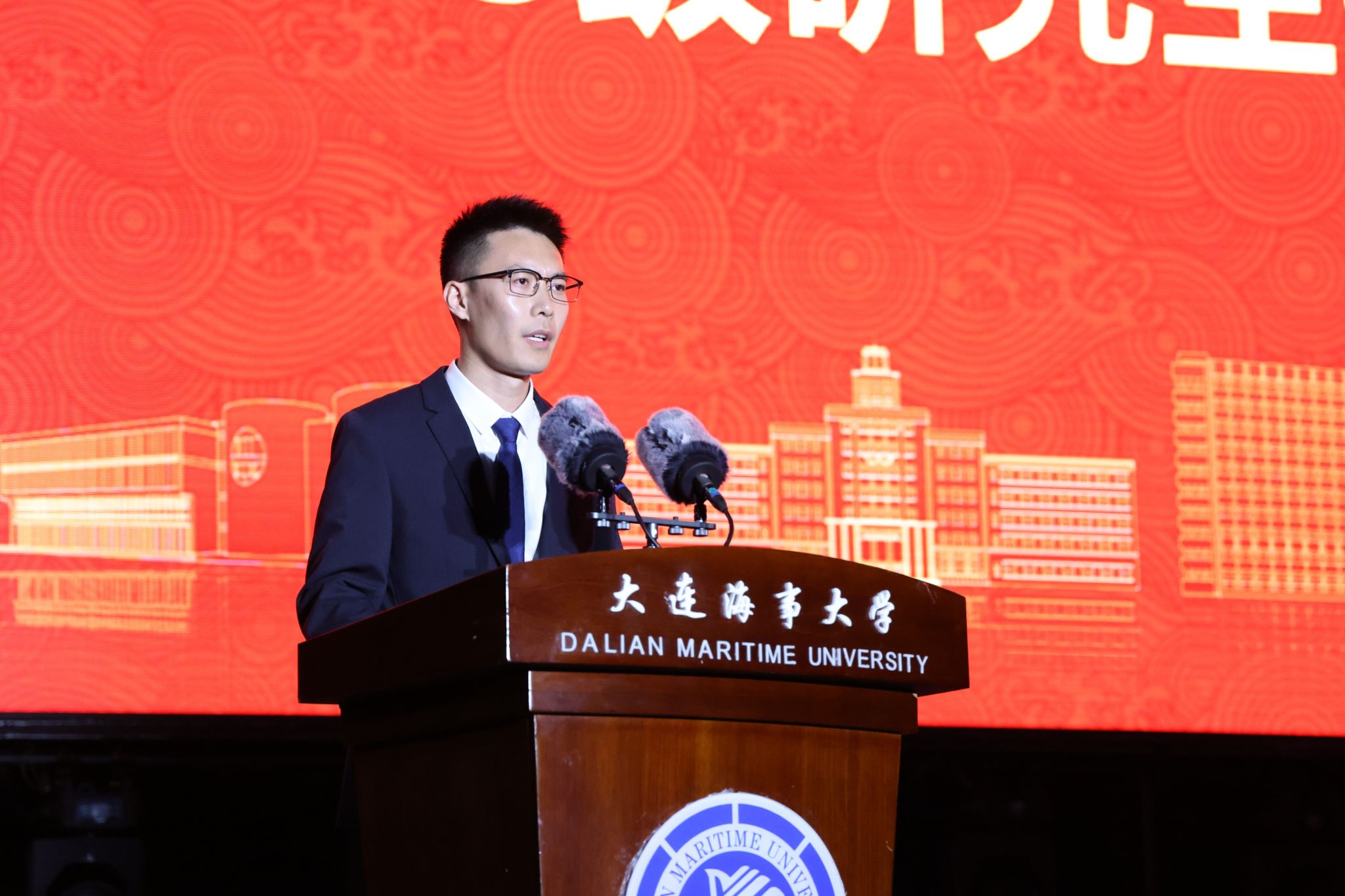 信息科学技术学院仲夏同学代表研究生新生发言。他分享了自己“三入海大”的经历,以及深刻感悟到个人成长与国家发展的紧密联系。他号召同学们以“日拱一卒”的精神,在海大这个“求学母港”共同书写堪当重任的未来。