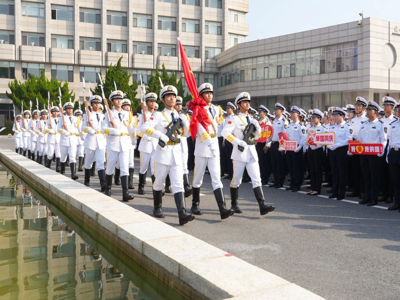 自1989年起,学校始终坚持每周一及重大节庆纪念日举行全校升国旗仪式,将其作为做好大学生思想政治教育的重要载体和育人平台。学校将升国旗仪式与半军事管理有机融合,通过在重要的时间节点对学生进行仪式教育,着力培养学生的家国情怀,汇聚爱国奋斗的海大青春力量。