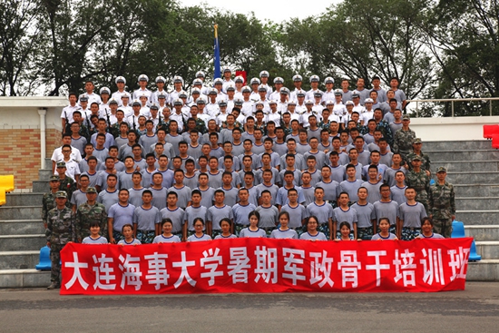 暑期组织学生军政骨干培训班,是大连海事大学学生培养的一种特色举措,自1995年开始,至今已举办二十三期。第二十三期暑期军政骨干培训班于2017年7月22日-8月4日在位于金州的综合训练基地举行,共有173名学生骨干参加并圆满完成了各项培训任务。期间培训科目主要包括单兵队列强化训练、队列教学法训练、班队列训练、心理行为训练和战术训练等。经过军政素质强化训练的学生骨干,回校后将承担起新生骨干培训、新生接续训练、学生日常管理和卫兵勤务等工作。