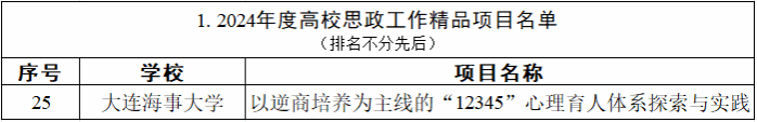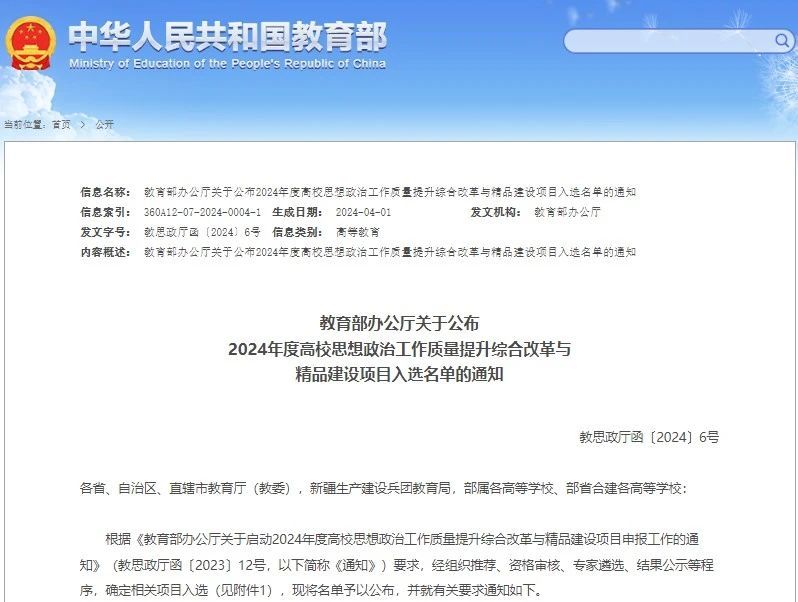 近日,教育部公布了2024年度高校思想政治工作质量提升综合改革与精品建设项目入选名单。我校申报的《以逆商培养为主线的“12345”心理育人体系探索与实践》成功入选高校思想政治工作精品项目。至此,学校连续6年入选全国高校思想政治工作质量提升综合改革与精品建设项目,反映出我校思想政治工作不断探索创新并持续产出优秀实践成果。
