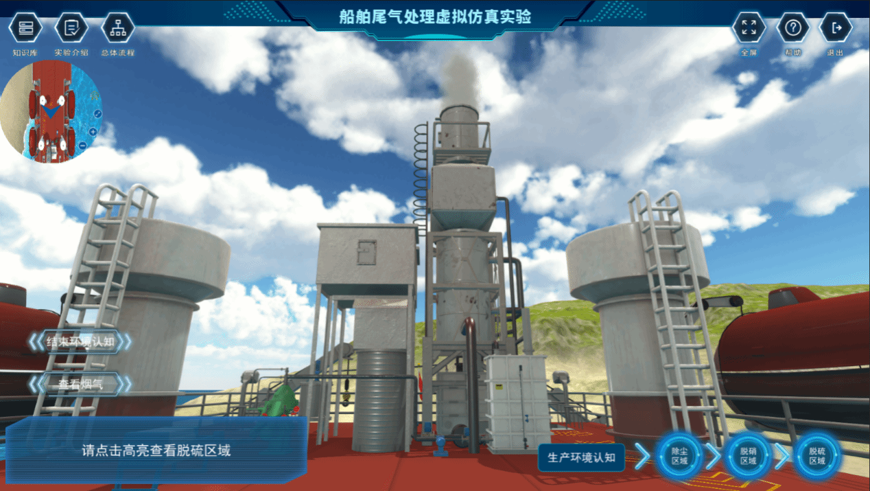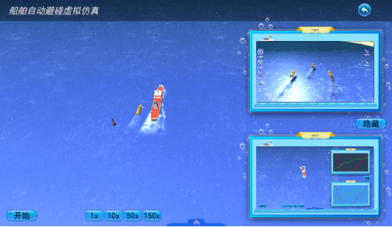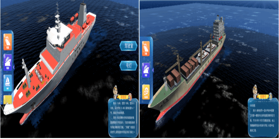 实验室在综合运用雷达、电子海图、车钟、舵等船用导助航设备的基础上,创建了以育鲲轮、育鹏轮为代表船型的海上通航虚拟场景,运用三维建模仿真技术手段,高度还原了船舶海上航行过程中的多种会遇态势。允许船员可以在多种情况下进行训练,提高他们的技能,使实验场景和实验对象更直观形象。