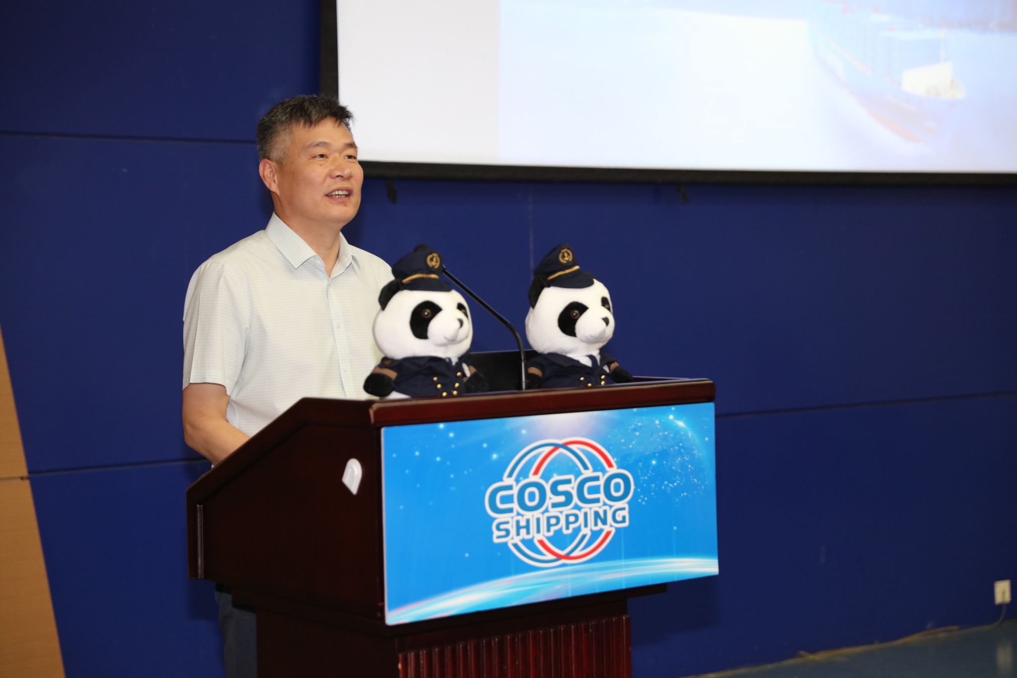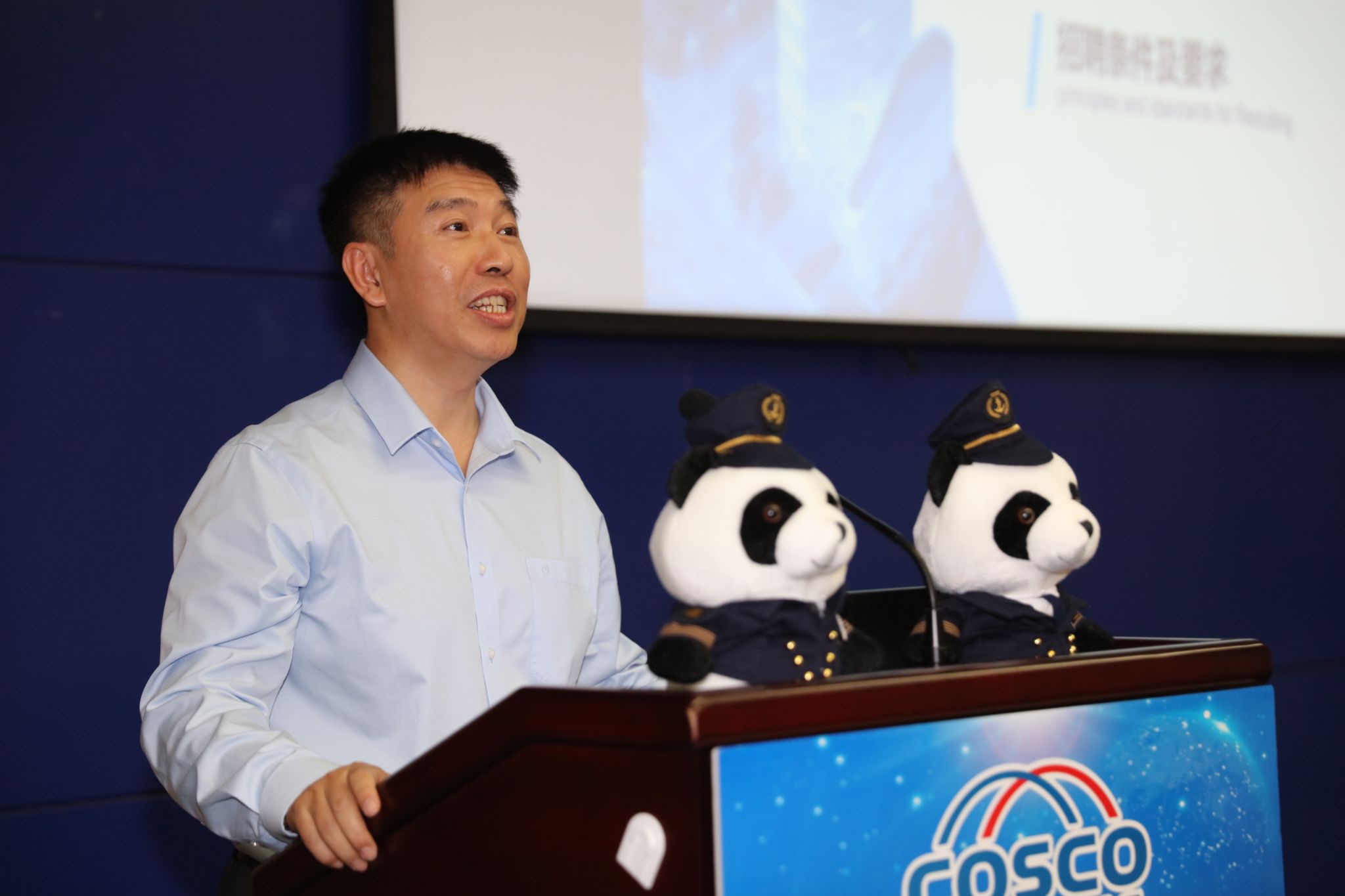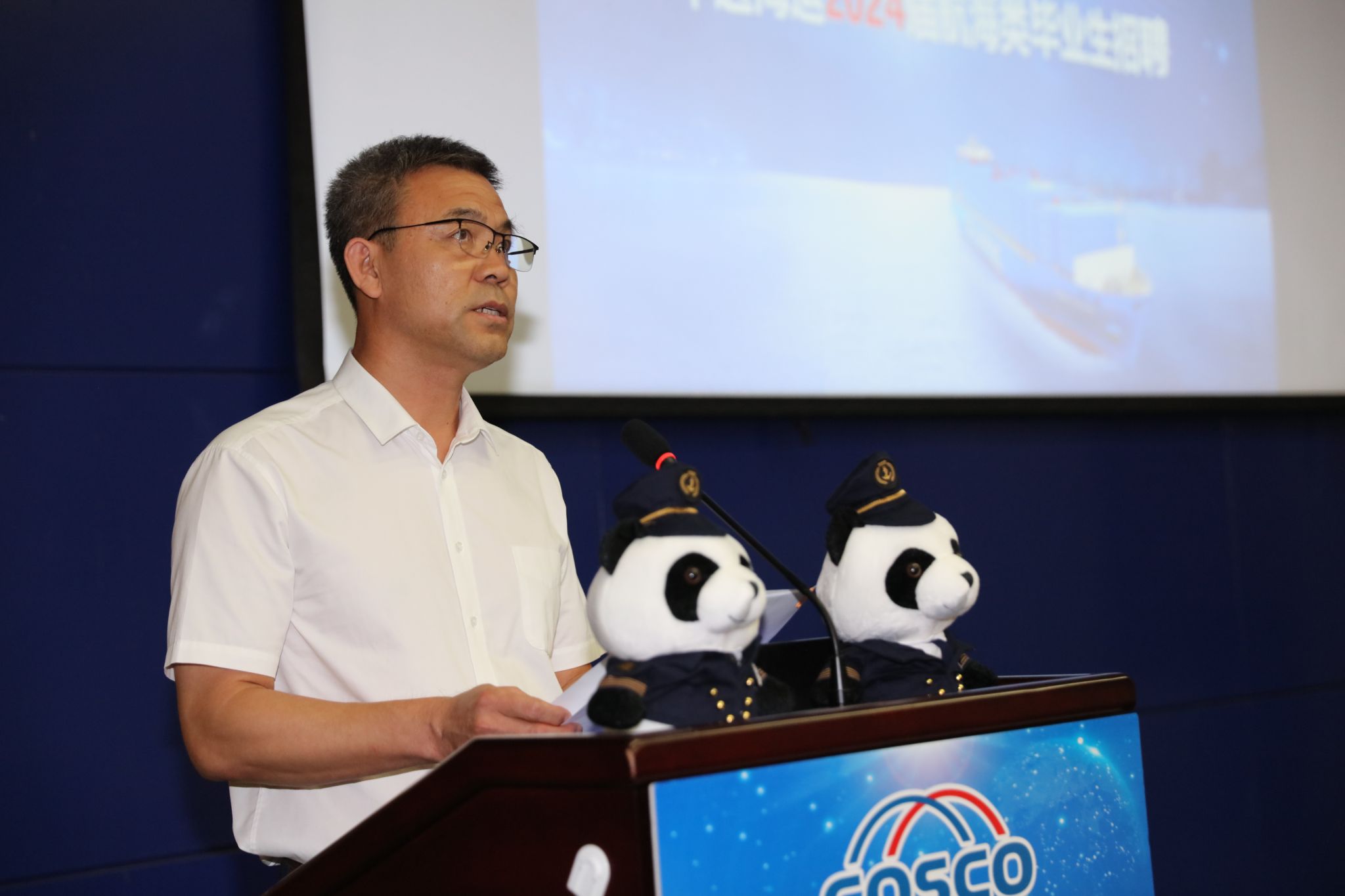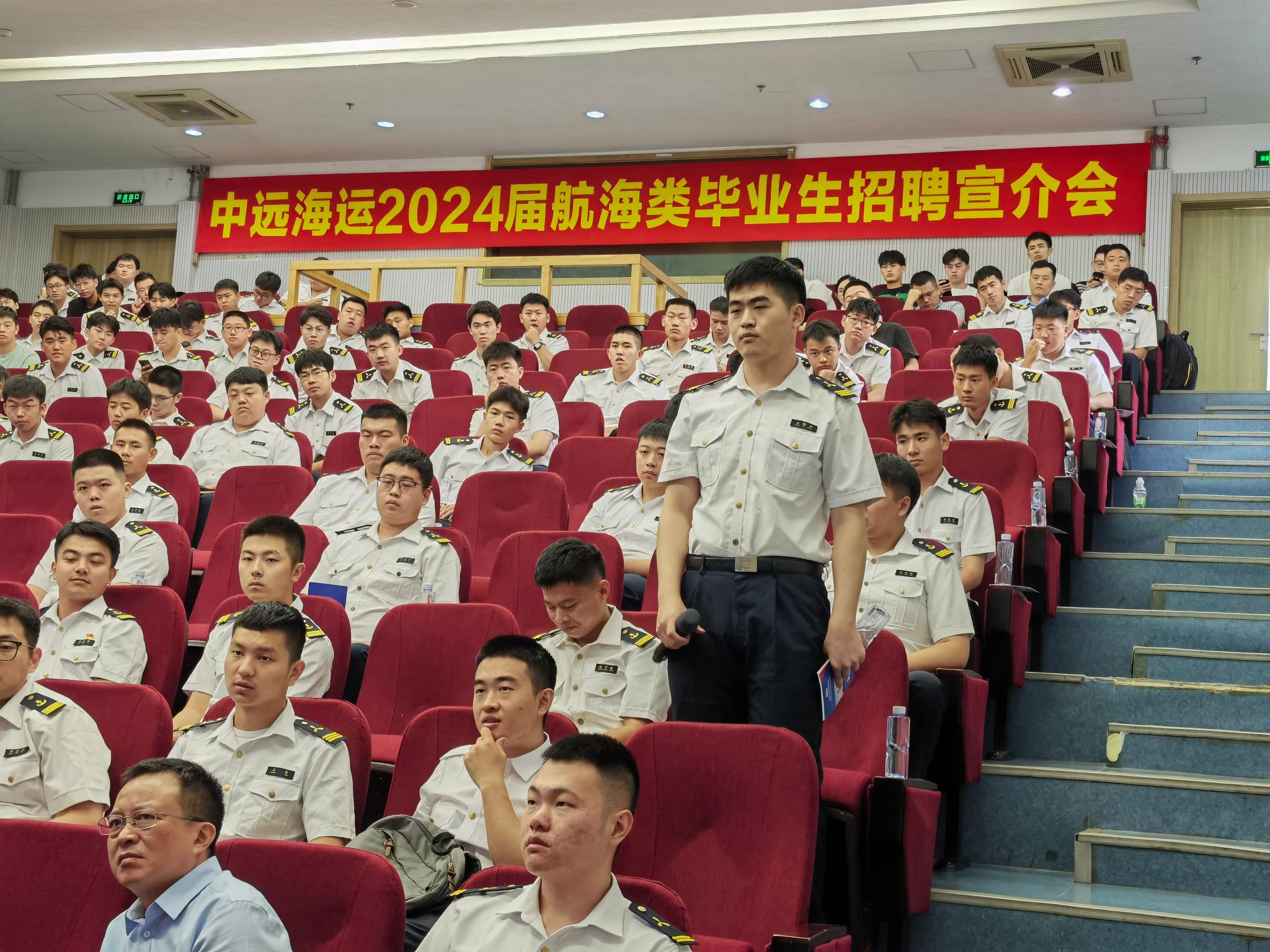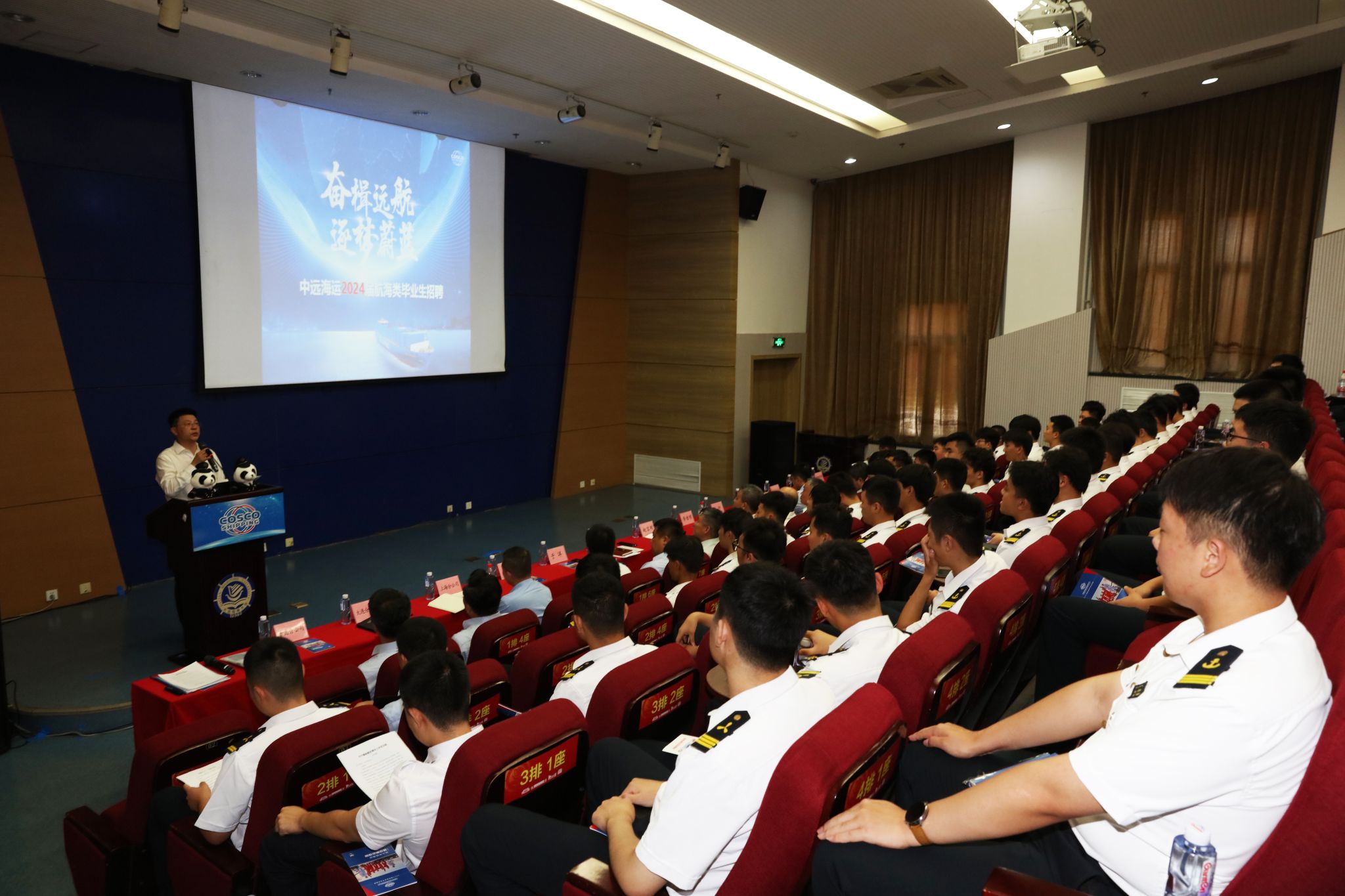 中远海运船员管理有限公司战略发展部副总经理王玥围绕中远海运集团概况、船员概况、“大国船队”优势、招聘条件及要求进行招录宣介。