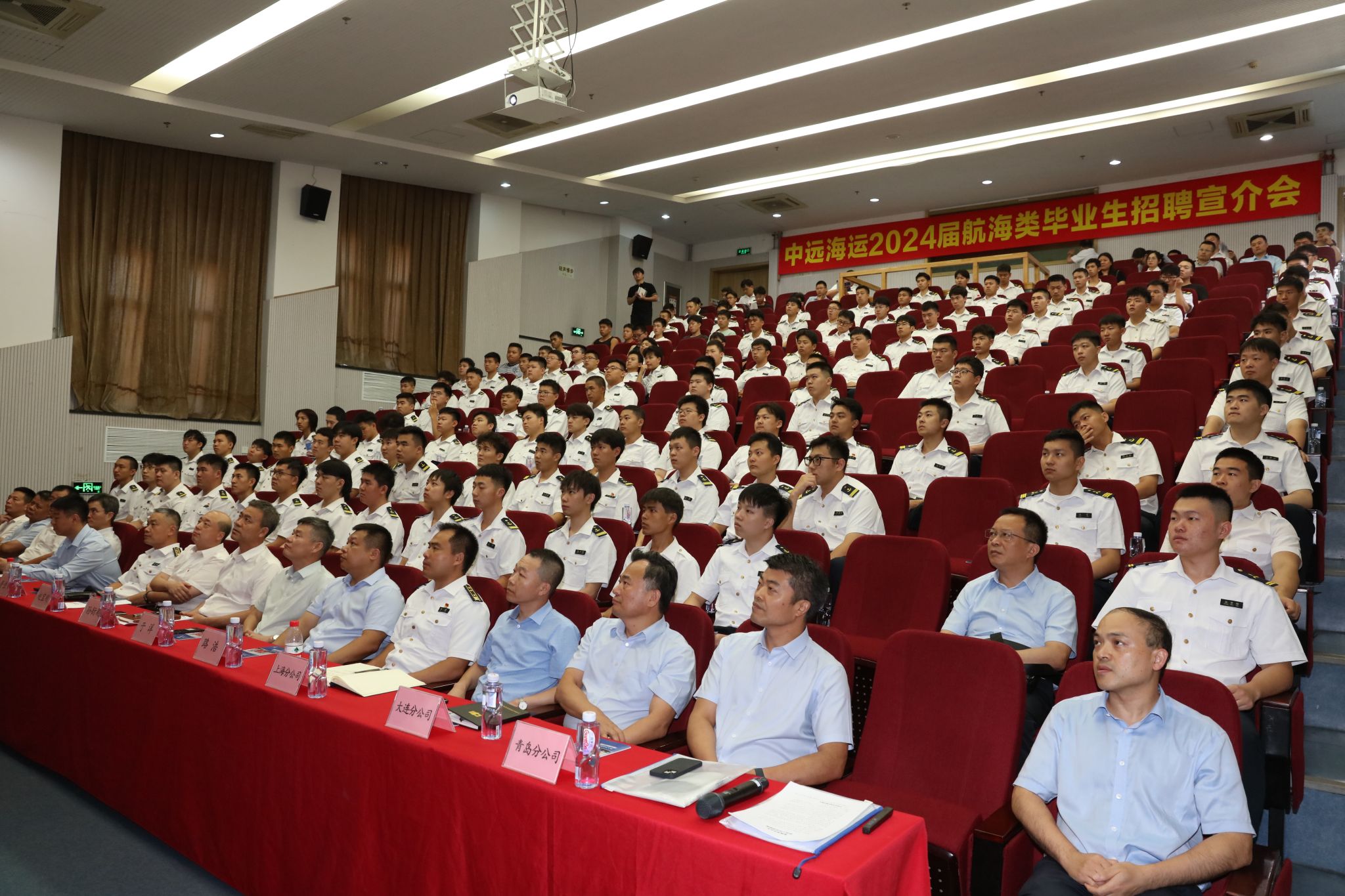 8月24日下午,中远海运2024届航海类毕业生招聘宣介会在我校海大展馆报告厅举办。中远海运船员管理有限公司副总经理孙衍刚、大连海事大学副校长赵宝刚、2024届航海类专业毕业生代表参加了宣介会。