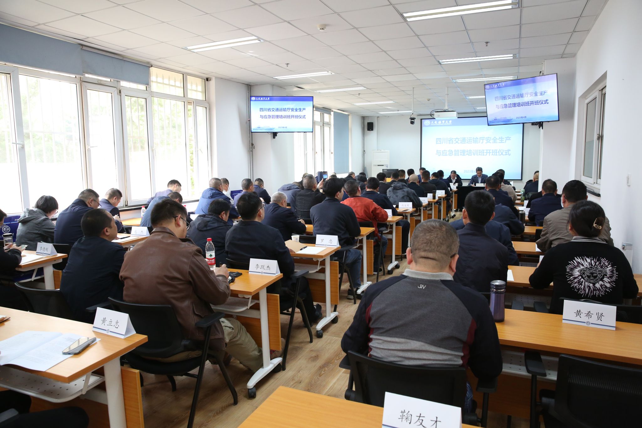 4月10日上午,由四川省交通运输厅和大连海事大学共同举办的“四川省交通运输厅安全生产与应急管理培训班”开班仪式在交通运输高级研修学院举行,四川省交通运输厅安全总监王波、大连海事大学副校长初北平以及全体学员出席开班仪式,仪式由交通运输高级研修学院副院长赵刚主持。