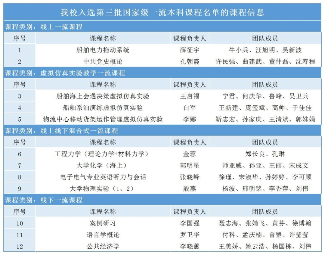 大连海事大学12门课程入选第三批国家级一流本科课程