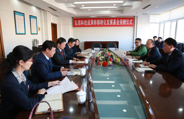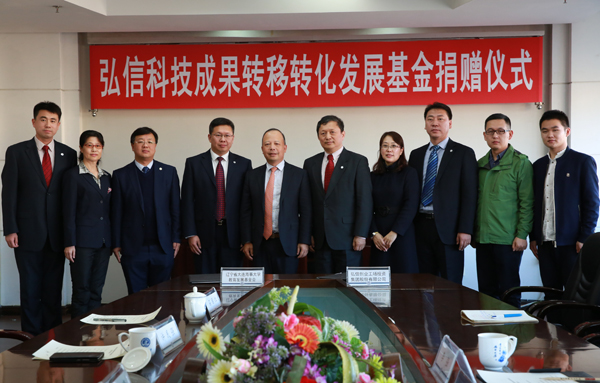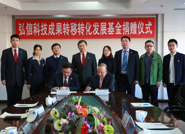 11月18日下午,弘信科技成果转移转化发展基金捐赠签字仪式在综合楼822会议室举行。弘信创业工场投资集团股份有限公司董事长李强(计算机及应用专业87级校友),校长孙玉清,党委副书记许民强,以及我校科技处、创新创业学院、教育发展基金会、投资管理公司等相关单位、部门负责人出席捐赠仪式。