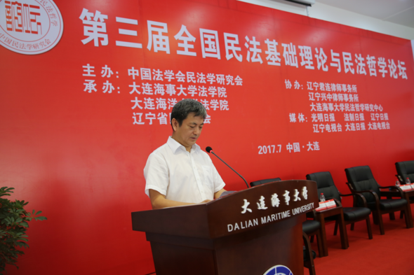 7月1日上午,由中国法学会民法学研究会主办,大连海事大学法学院、大连海洋大学法学院和辽宁省民法学会联合承办,辽宁君连律师事务所、辽宁兴中律师事务所、大连海事大学民法哲学研究中心协办的第三届“全国民法基础理论与民法哲学论坛”在我校大学生活动中心五楼报告厅隆重举行。本届论坛为期两天,1日上午在我校、2日上午在大连海洋大学分别举行了两场“主题论坛”,1日下午在大连市委党校举行了一场“主题研讨”。