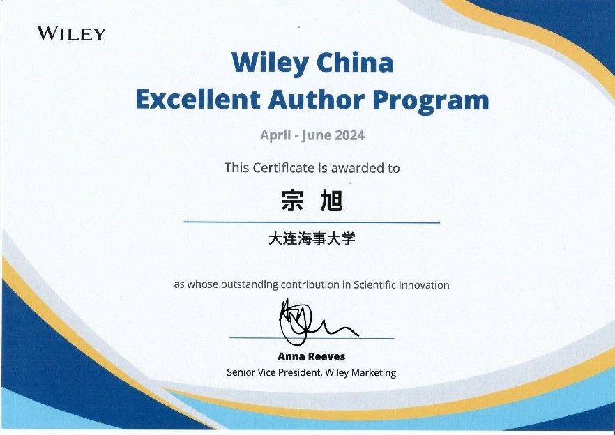 近日,我校轮机工程学院宗旭教授获评 “Wiley威立中国高贡献作者”。Wiley是全球历史最悠久﹑最知名的学术出版商之一。为感谢中国作者在推动科技进步所做的贡献,Wiley中国在广受中国作者认可的期刊中统计了由中国作者(通讯作者发文机构为中国大陆机构)发表的文章在发表后三个自然月的全文阅读下载量,从每本期刊中选择下载量最高的若干篇文章,经过严格评选,授予数位作者“Wiley威立中国高贡献作者”称号。