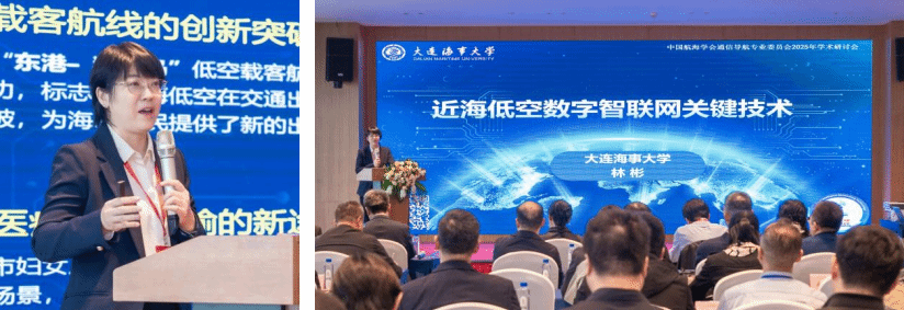 在主题报告环节,多位专家进行了分享。大连海事大学教授林彬分享了题为《近海低空数字智联网关键技术》的报告,介绍了在近海低空智联网领域的关键技术与研究进展,并展望了未来近海低空智联网的技术发展方向。