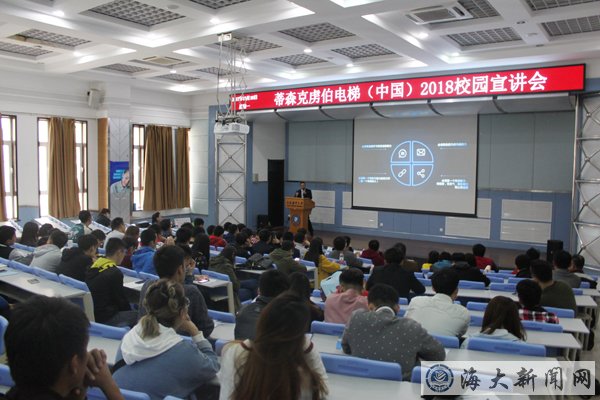 会谈后蒂森克虏伯电梯公司在启航楼101举行了校园专场招聘会。此次招聘涉及的专业包含销售类、机械自动化类、电子电气类和财务类等,同学们踊跃投递简历,现场气氛热烈。