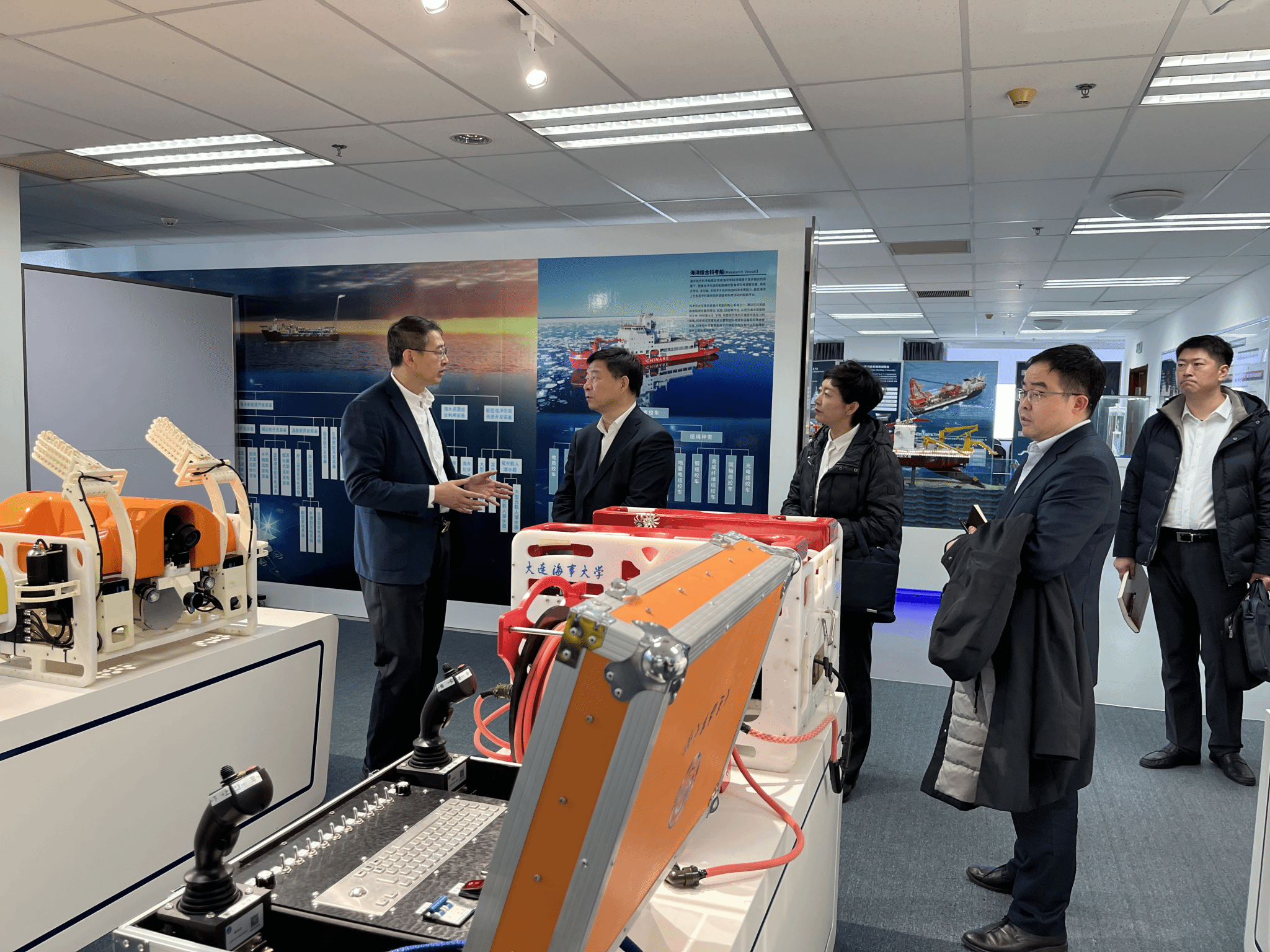 吕东升表示,大连金普新区肩负国家重要战略和使命,是东北地区开放前沿,区位优势明显、发展环境优越、产业基础雄厚、海洋资源丰富、发展潜力巨大。大连金普新区深入贯彻大连建设现代海洋城市总体部署,围绕深远海养殖、海工海事装备等大力发展海洋经济,多年支持举行全国人工智能水下机器人大赛,积极利用科技创新成果促进产业发展。通过本次考察学习,深切体会到大连海事大学在科技创新方面取得的显著成就,充分感受到相关科研成果对促进产业发展的巨大潜力,希望以水下机器人应用示范、成果转化合作为切入口,与大连海事大学在成果转化、技术攻关等方面加强合作,在更多领域寻求新突破,用新兴的产业、项目提振新区产业发展,助力新区高质量高速度发展。