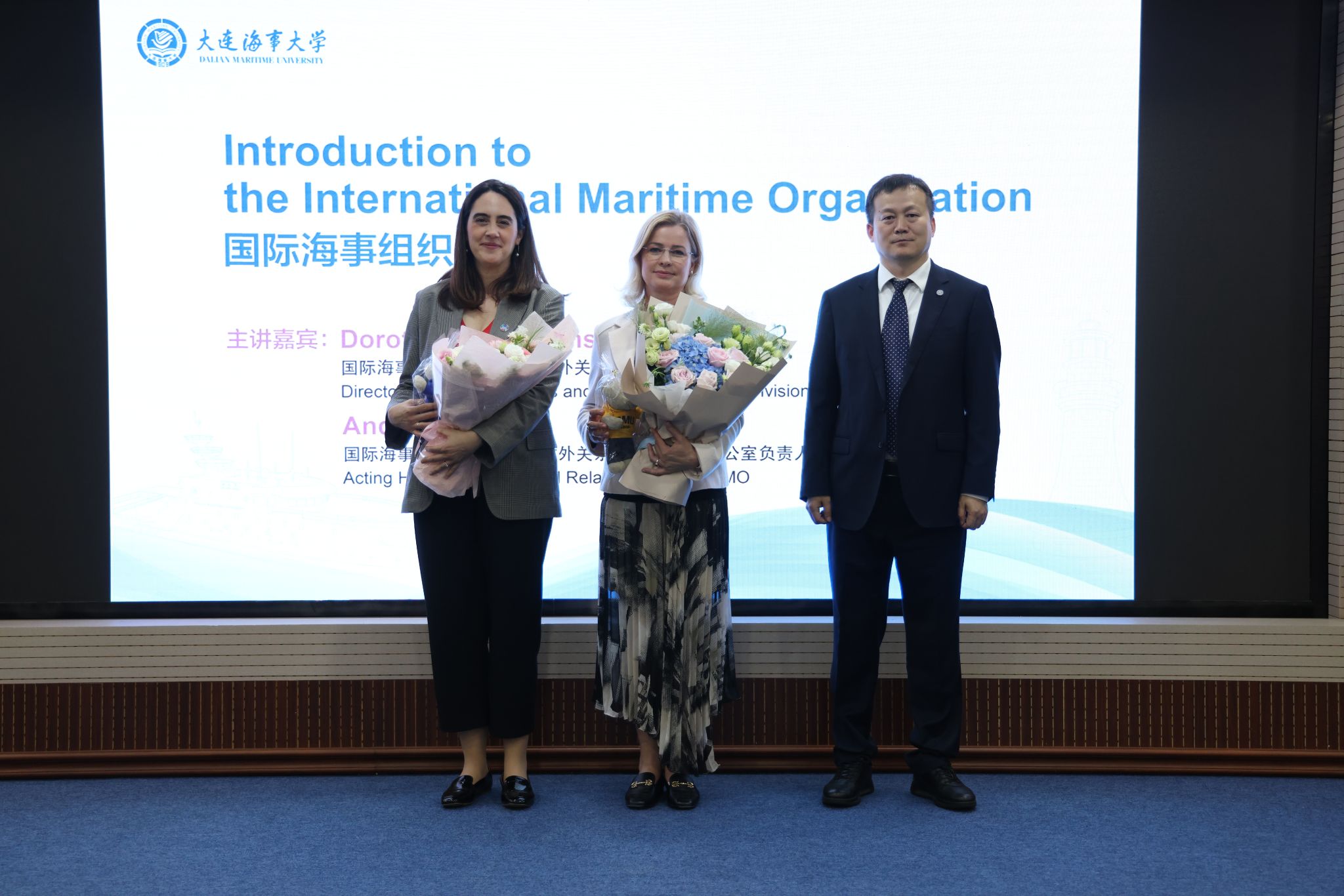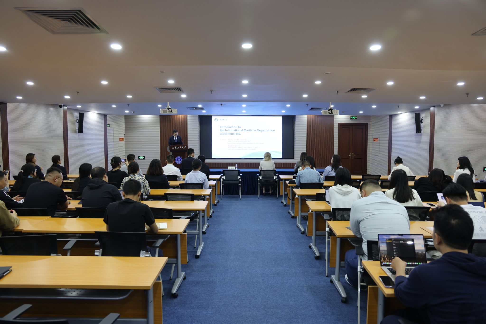 当日下午,学校在综合楼凌水国际会议中心举办“国际海事组织概览”专题讲座,副校长曾庆成主持活动。Dorota Lost-Sieminska全面阐释了IMO的职能架构与全球海事治理工作,Andrea Garcia就IMO实习项目进行了详细介绍。活动现场气氛热烈,我校师生就国际海事热点问题与来访嘉宾进行了深入交流。