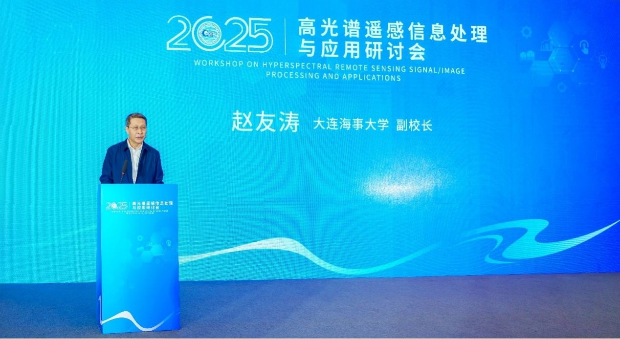 赵友涛在致辞中对各位专家、领导和嘉宾的到来表示热烈欢迎。他强调,大连海事大学始终致力于推进海洋与海事领域的前沿科技研究,高光谱遥感作为重要的观测与感知手段,在海洋环境探测、海事活动监测等方面发挥着重要作用。本次大会为学校与国内高水平科研团队搭建了宝贵的交流平台,必将进一步推动我校特别是高光谱遥感相关学科的发展。