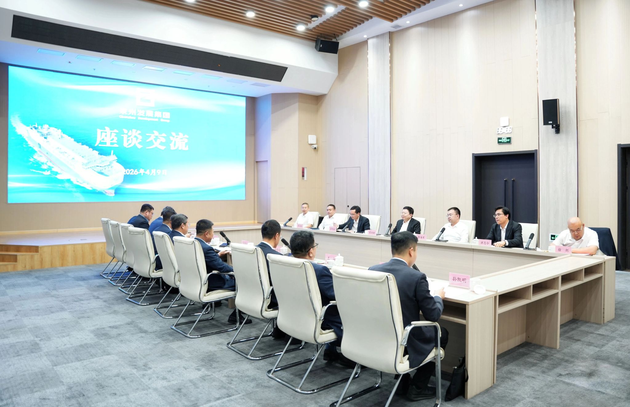 在泉州发展集团有限公司,集团党委书记、董事长蔡洪潮,党委副书记、副董事长、总经理李海军,党委委员、副总经理苏明城等会见许民强一行并座谈交流。双方介绍了各自单位的基本情况与发展历程,一致认为学校的优势学科与集团业务板块高度契合,在海员培训、外派劳务、贸易供应链等领域具有广阔的合作空间。双方表示,将在既有中泉集团人才合作基础上,进一步拓展合作维度,推动更高水平协同,为航运业高质量发展和产业链升级注入新动能。