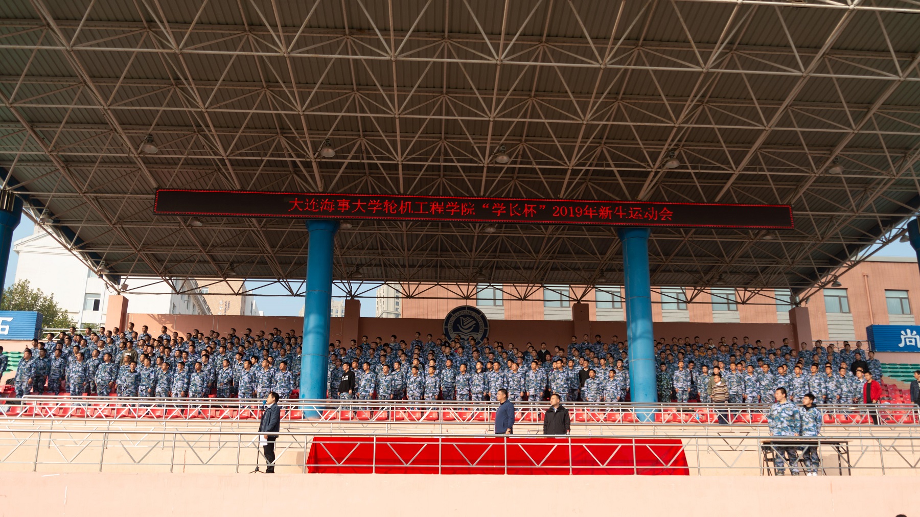 为深入推进“全民健身”运动,加强学院体育工作建设,不断提高学生的健康水平。大连海事大学轮机工程学院于10月19日在西山体育场举办“学长杯”新生运动会。学院2001级校友张春晓,轮机工程学院党委副书记兼副院长毕鹏杰、半军事管理大队大队长刘宝明和团委书记路浩,2019级全体新生运动员、指导员以及轮机田径队共同参加了运动会。此次运动会由路浩主持。