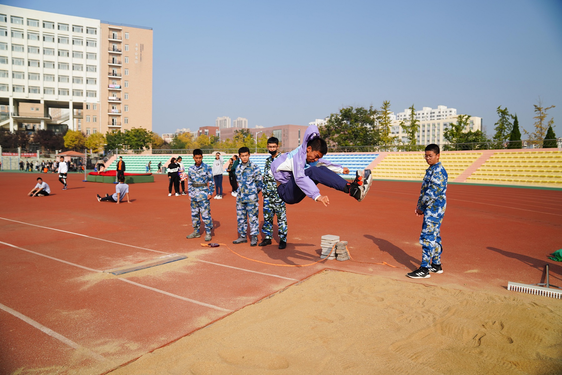 本次运动会设有田径比赛、跳绳比赛、拔河比赛、点球大战等十余个比赛项目,轮机工程学院2019级新生和田径队的队员们共计200余名同学报名参赛。比赛进程紧张、有序而热烈,每名运动员都斗志昂扬,顽强拼搏。