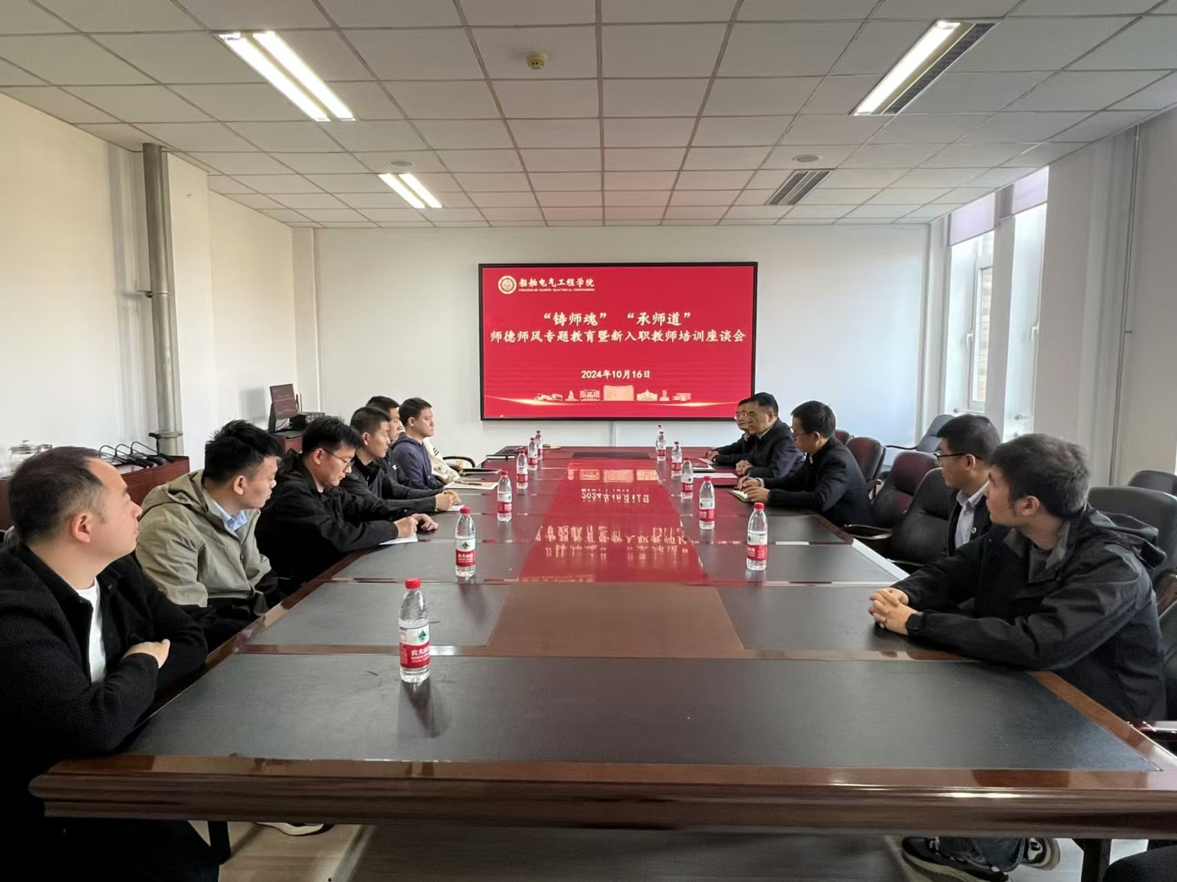 为进一步强化师德师风建设,助力青年教师成长,10月16日,船舶电气工程学院举办 “铸师魂”“承师道” 师德师风专题教育暨新入职教师培训座谈会。学院党委书记徐德江、副院长牛小兵,2024级新生班主任及近两年新入职青年教师参加。会议由牛小兵主持。