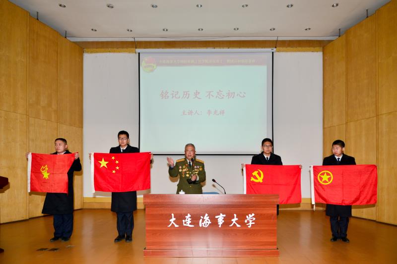 为深入学习贯彻党的十九大精神,强化对学院全体学生党员以及第十一期团校培训班学员的理想信念教育,进一步提升青年党员的党性修养,11月29日下午,大连海事大学轮机工程学院在中远报告厅举办了“铭记历史 不忘初心”专题报告会,报告会由“中国好人”、辽宁省道德模范李光祥将军主讲。