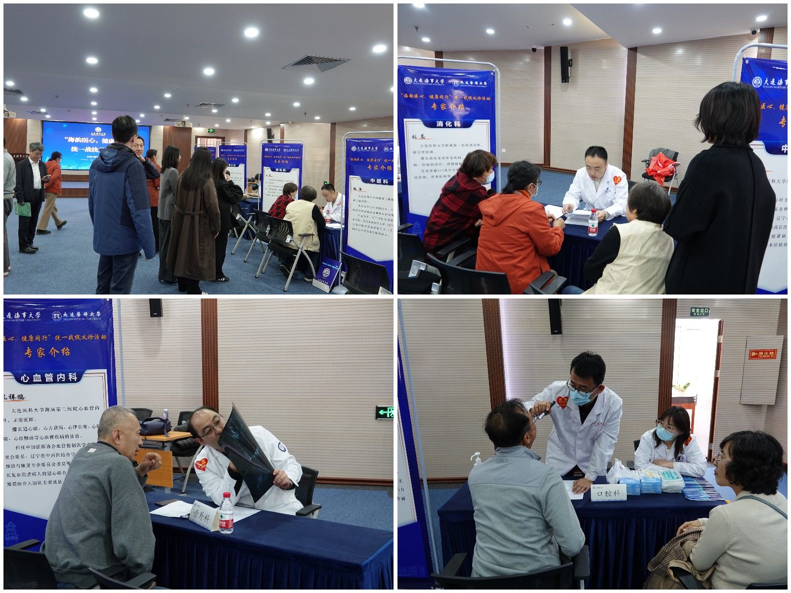11月20日,大连海事大学联合大连医科大学共同开展“海韵医心,健康同行”统一战线义诊和交流活动。此次义诊活动的专家团队来自大连医科大学附属第一医院、附属第二医院和附属口腔医院,覆盖心血管内科、口腔科、骨外科、体检中心、消化科、普外科、中医科、心理、神经内科、呼吸内科和全科医学等十个科室。